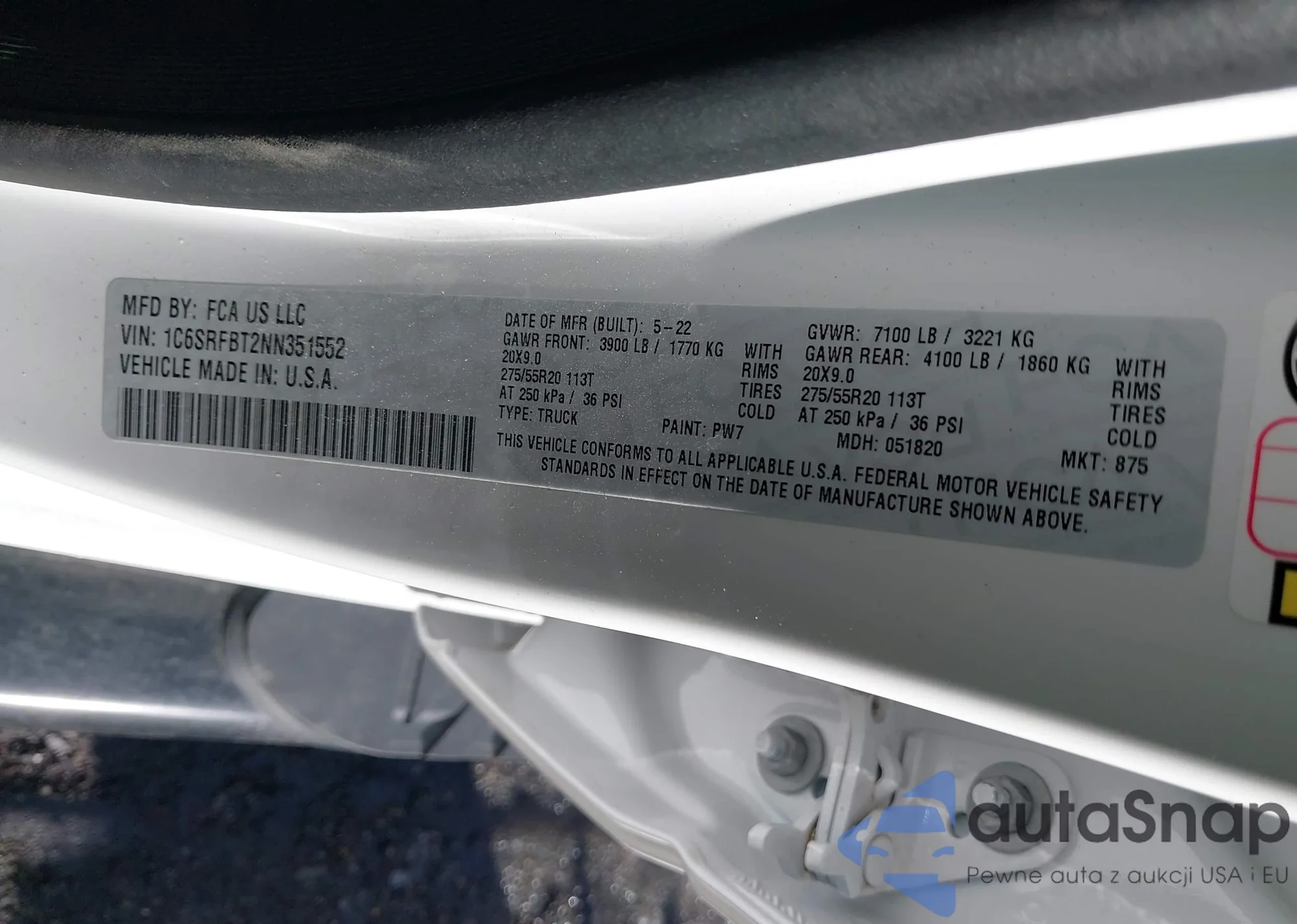 • VIN 1C6SRFBT2NN351552