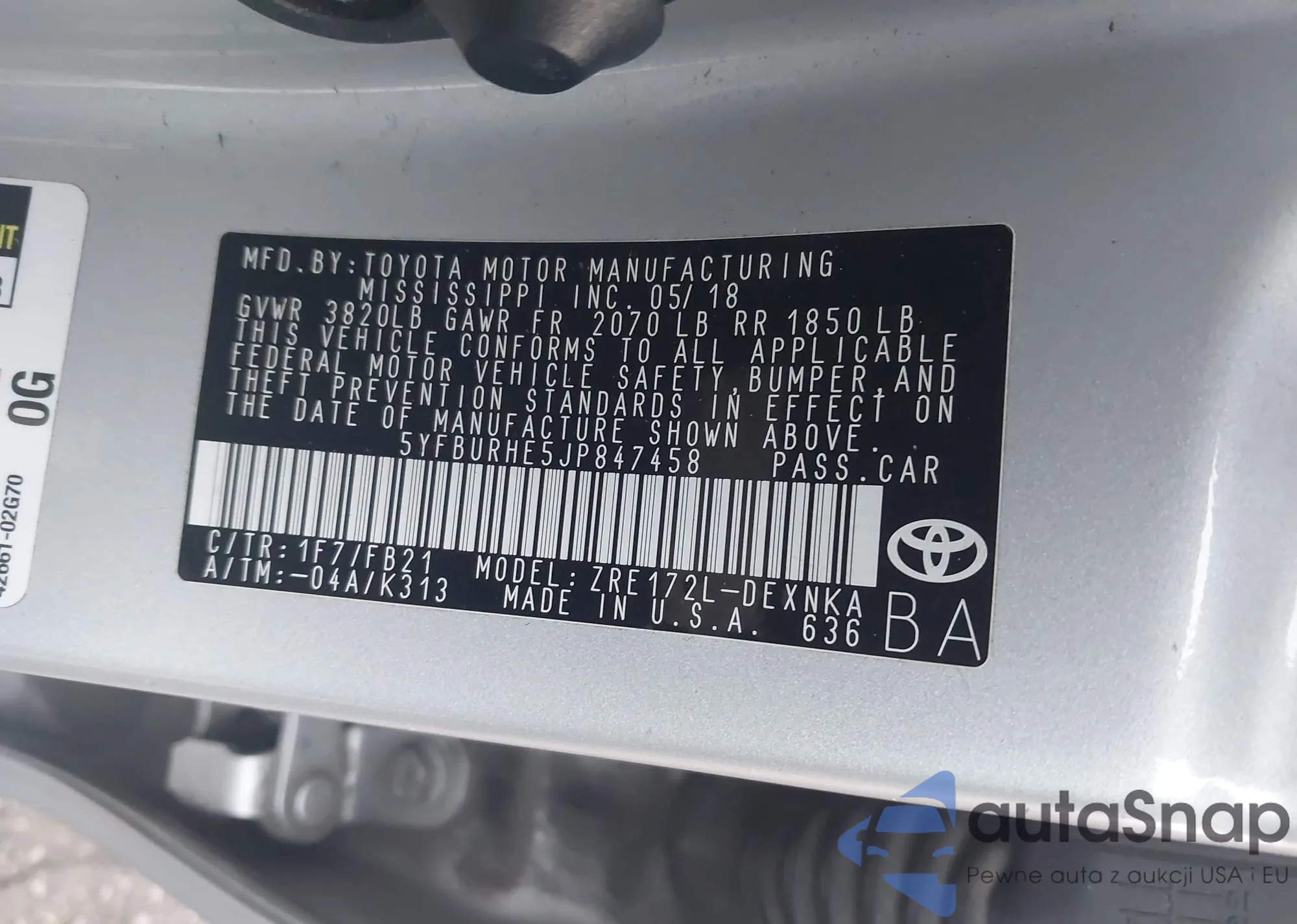 • VIN 5YFB4MDE4SP348306