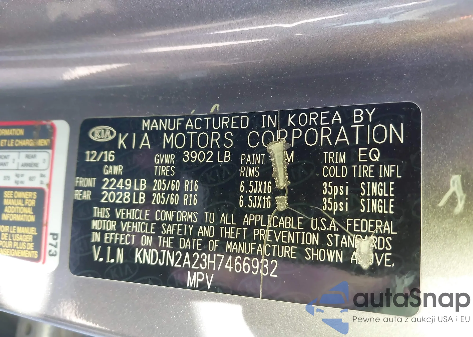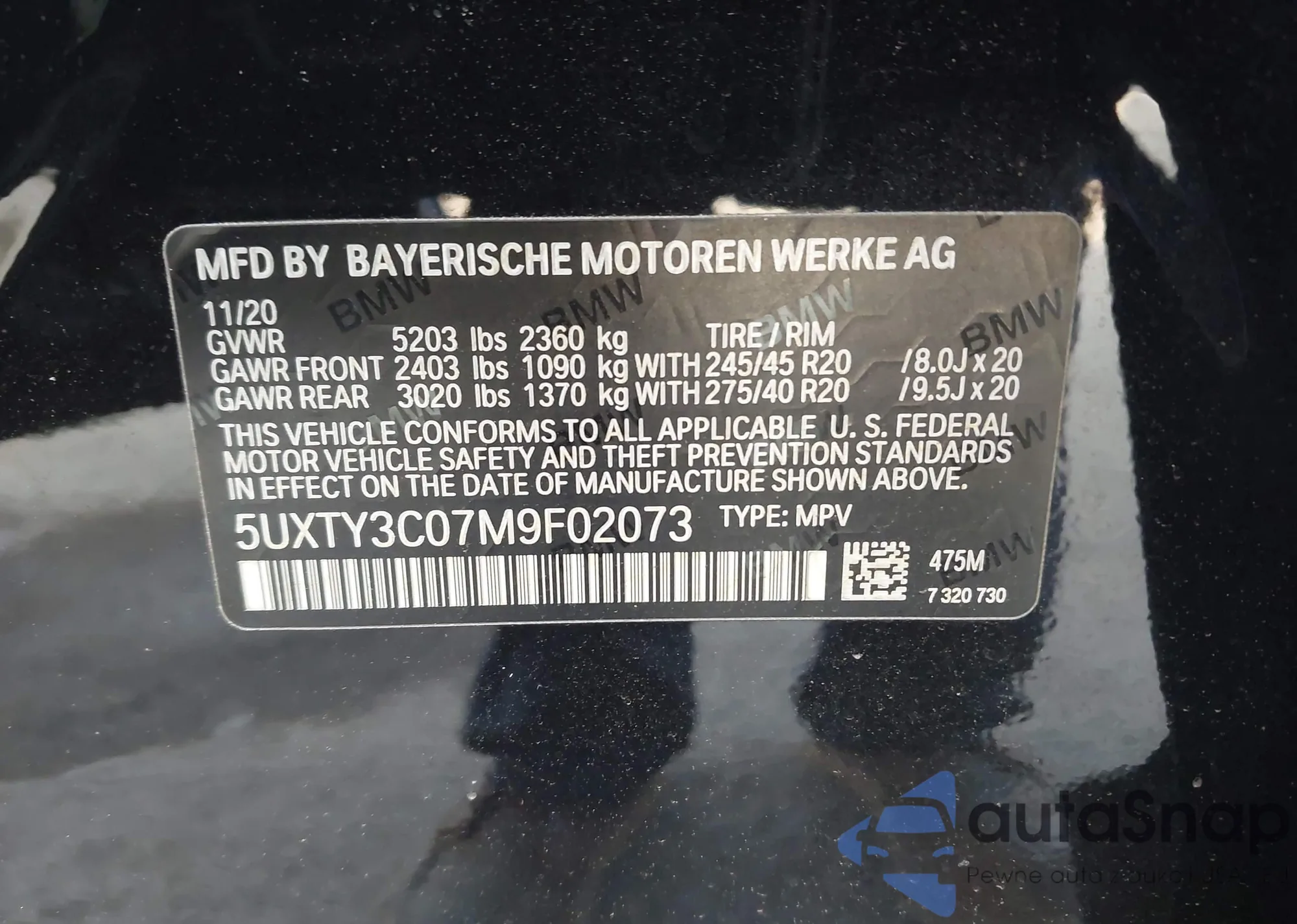 • VIN 5UXTY3C07M9F02073