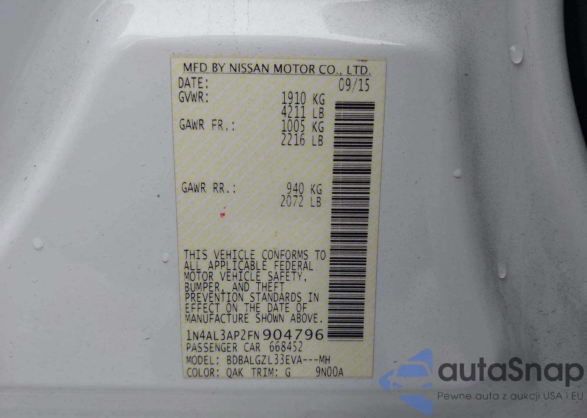 LOT: 44225704 VIN: 1N4AL3AP2FN904796