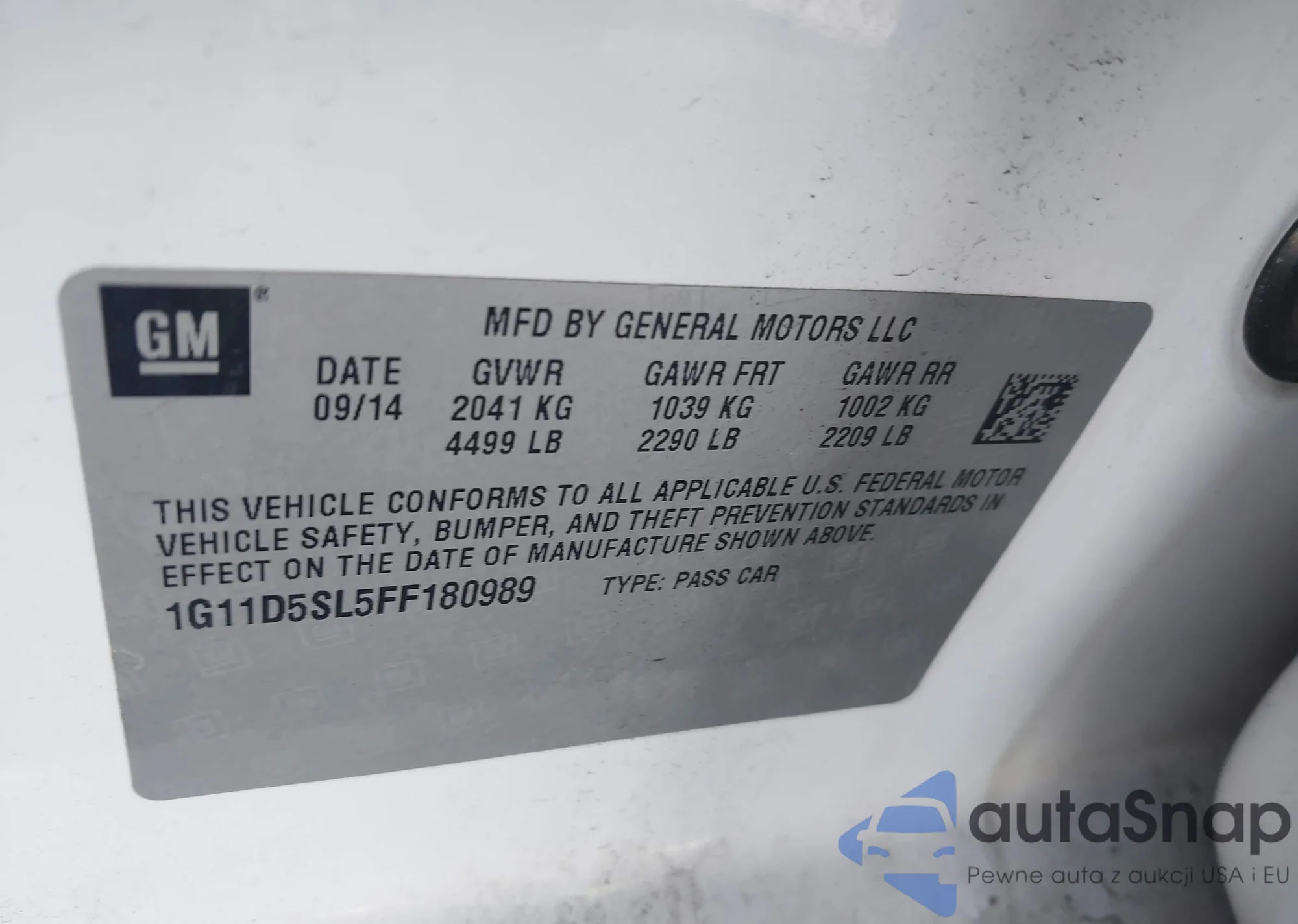 • VIN 1G11D5SL5FF180989