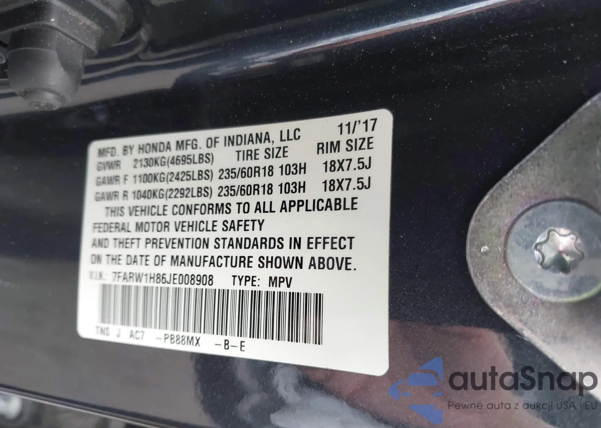 • VIN 7FARW1H86JE008908