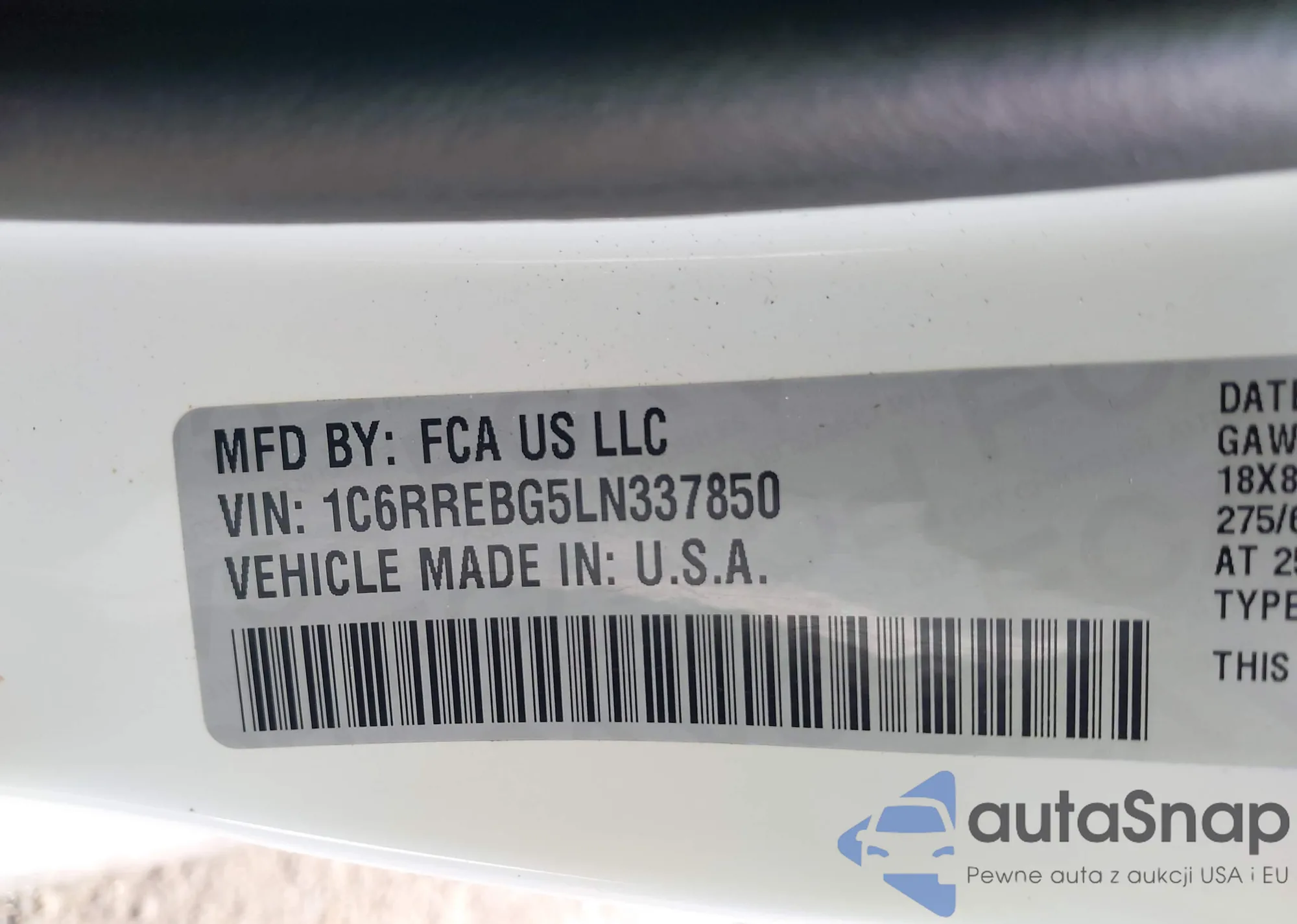 LOT: 44247193 VIN: 1C6RREBG5LN337850