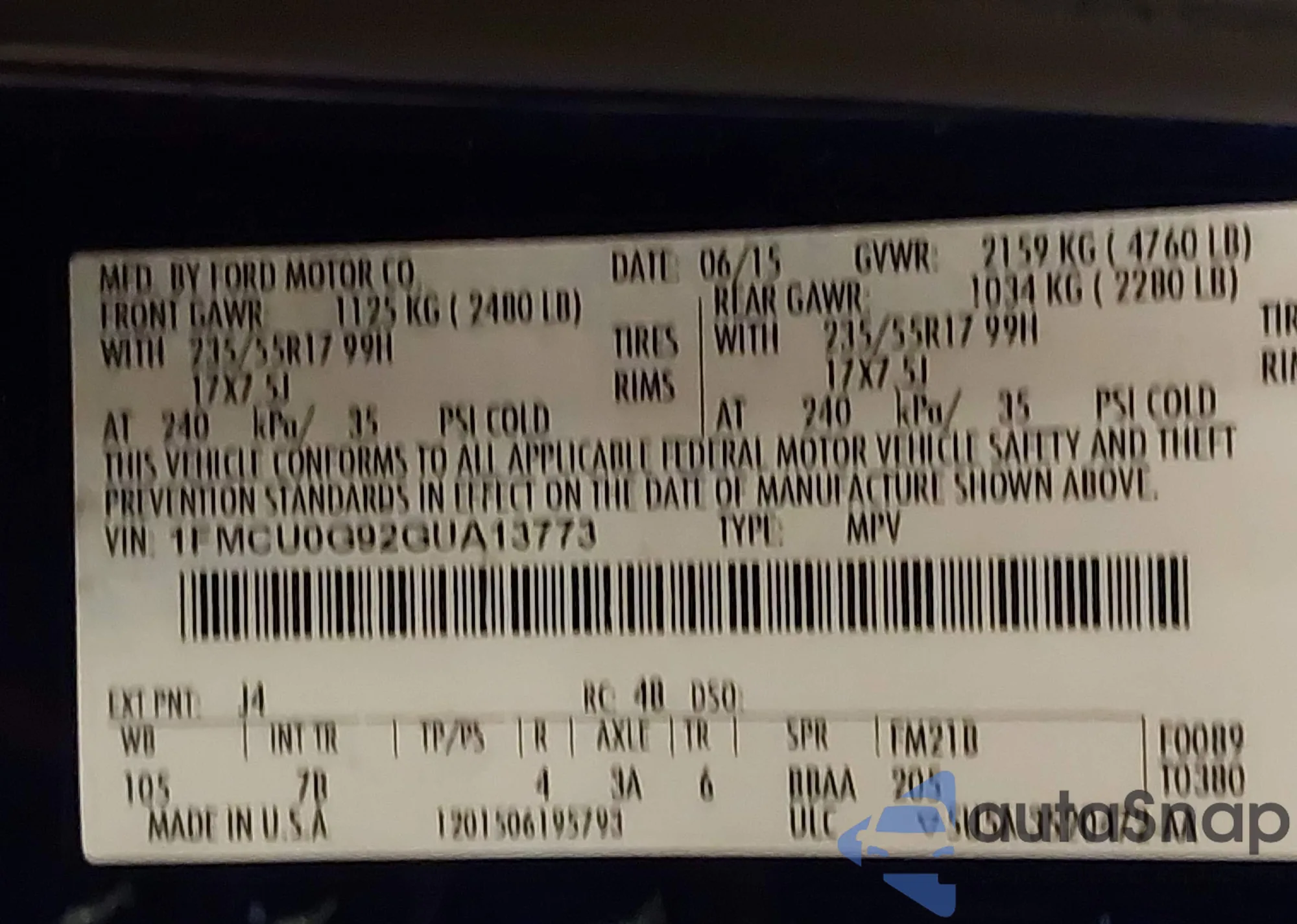 • VIN 1FMCU0G92GUA13773