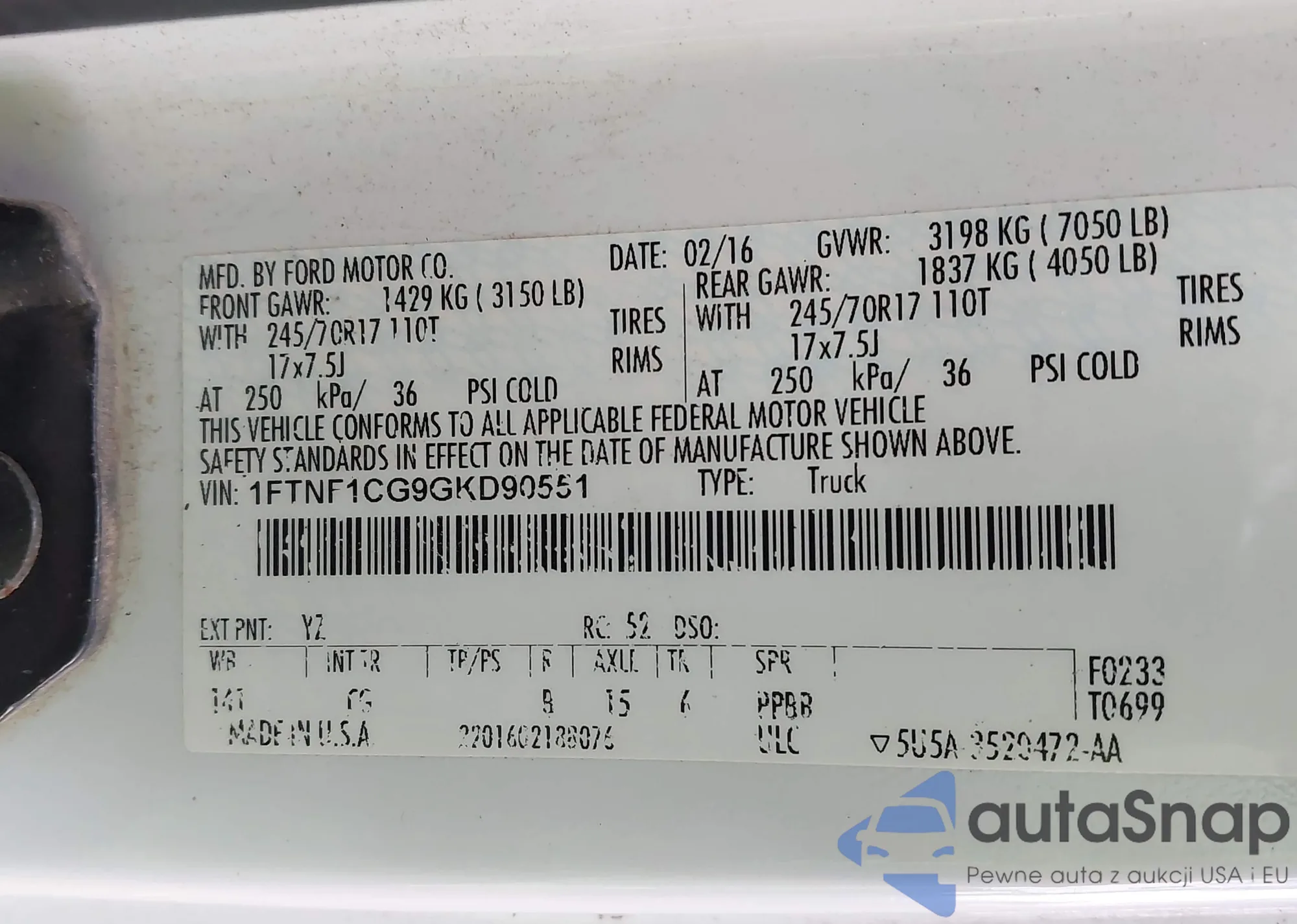 • VIN 1FTNF1CG9GKD90551