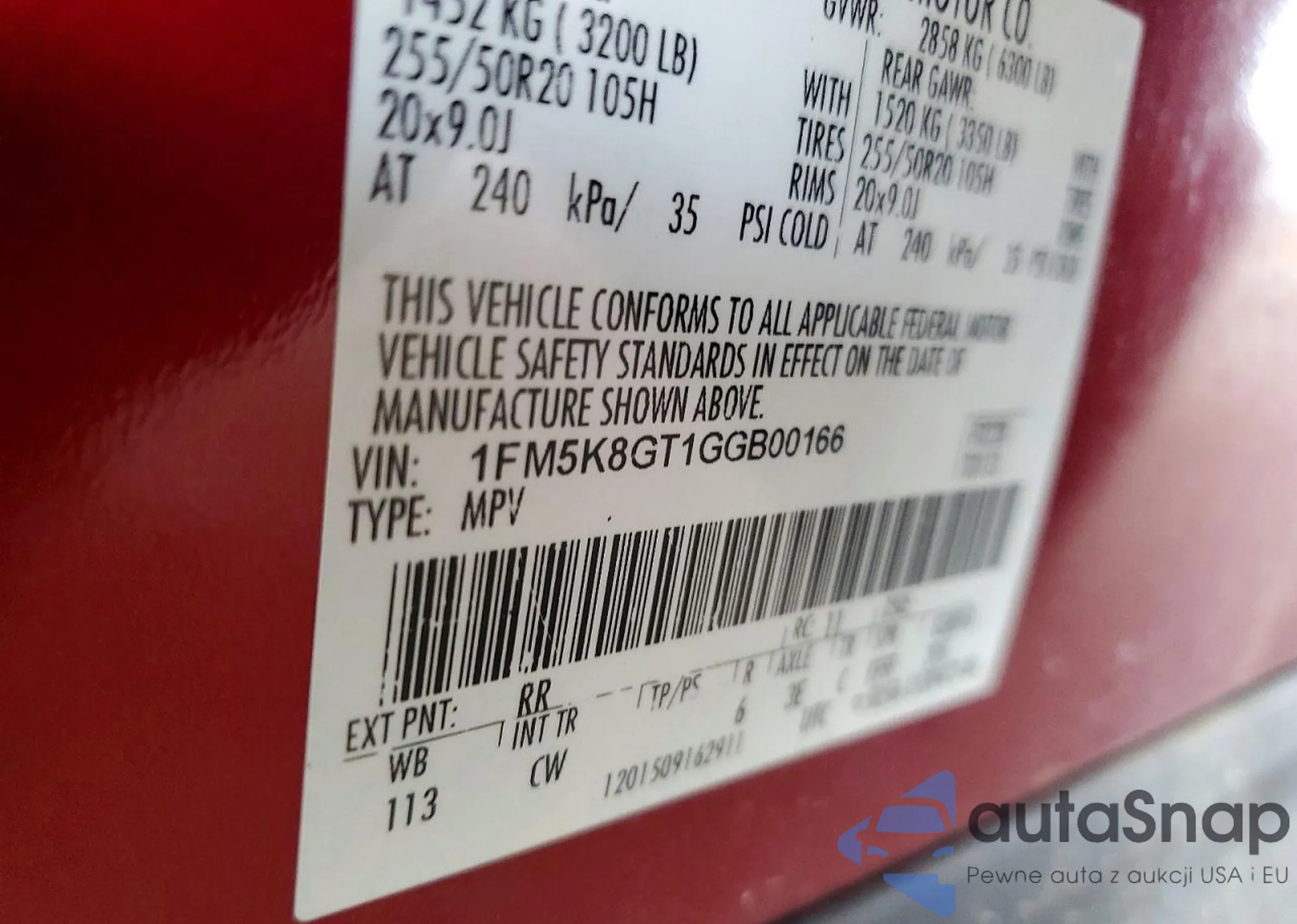 • VIN 1FM5K8GT1GGB00166