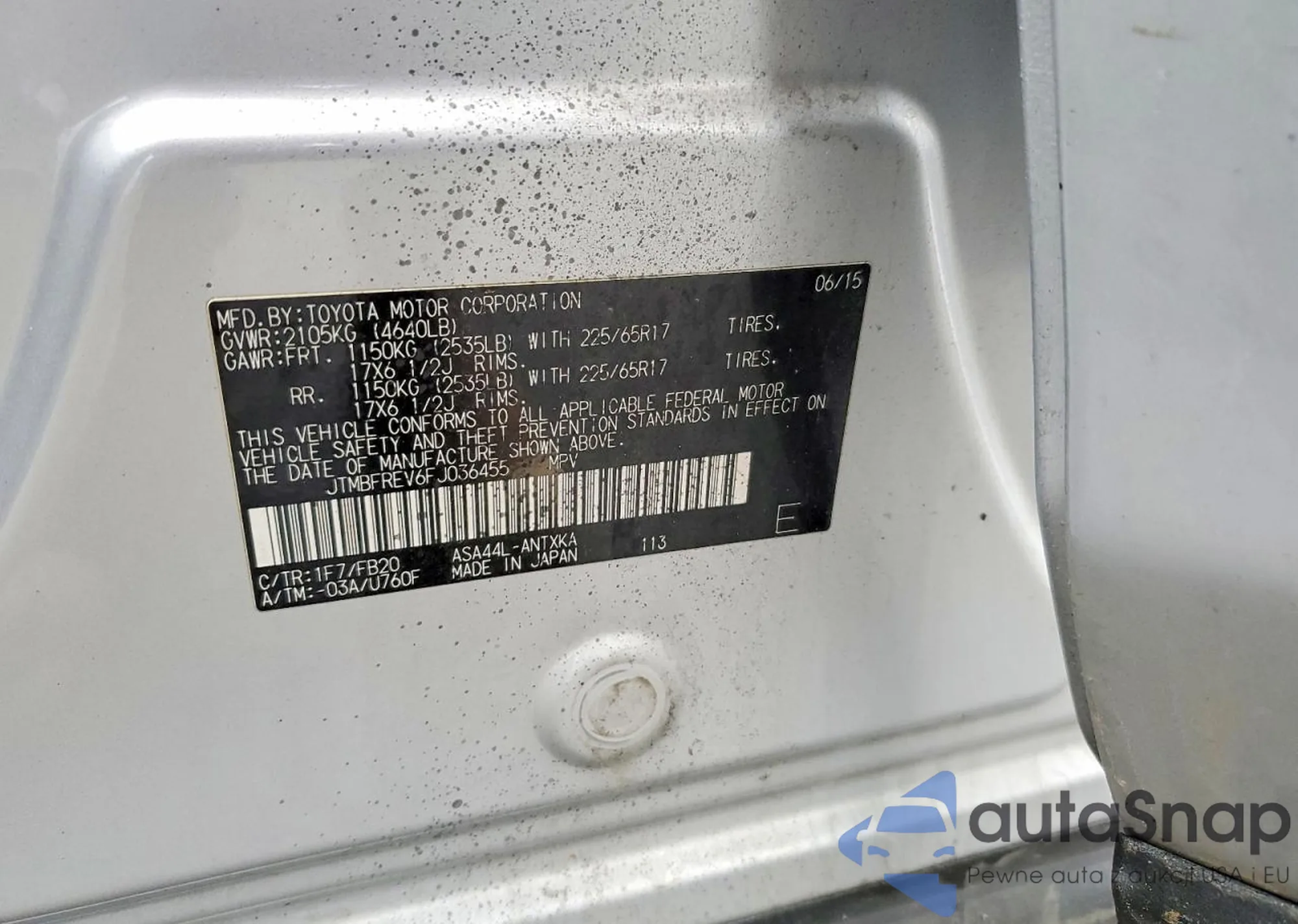 • VIN 1C4AJWAG9JL820139