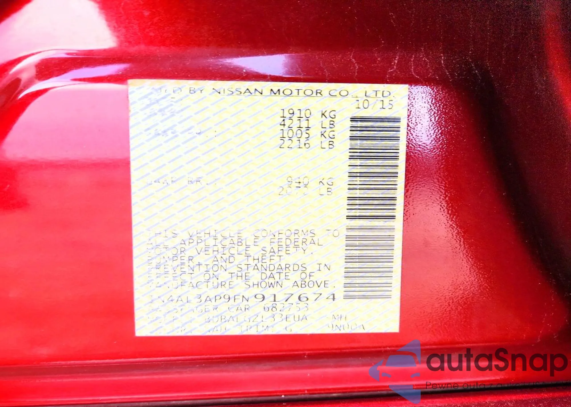 LOT: 95921005 VIN: 3N1CN7AP4KL847275