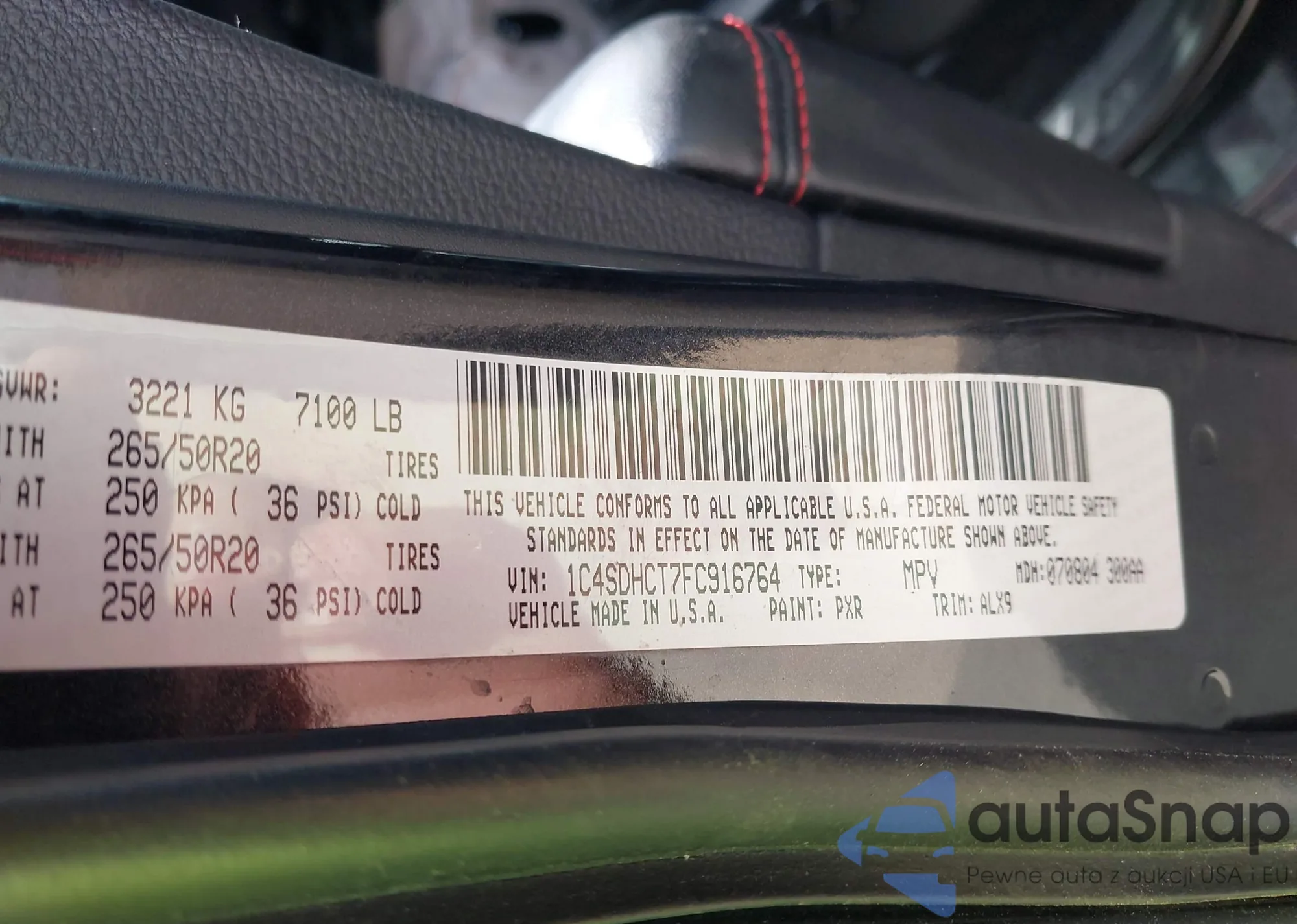 • VIN 1C4SDHCT7FC916764