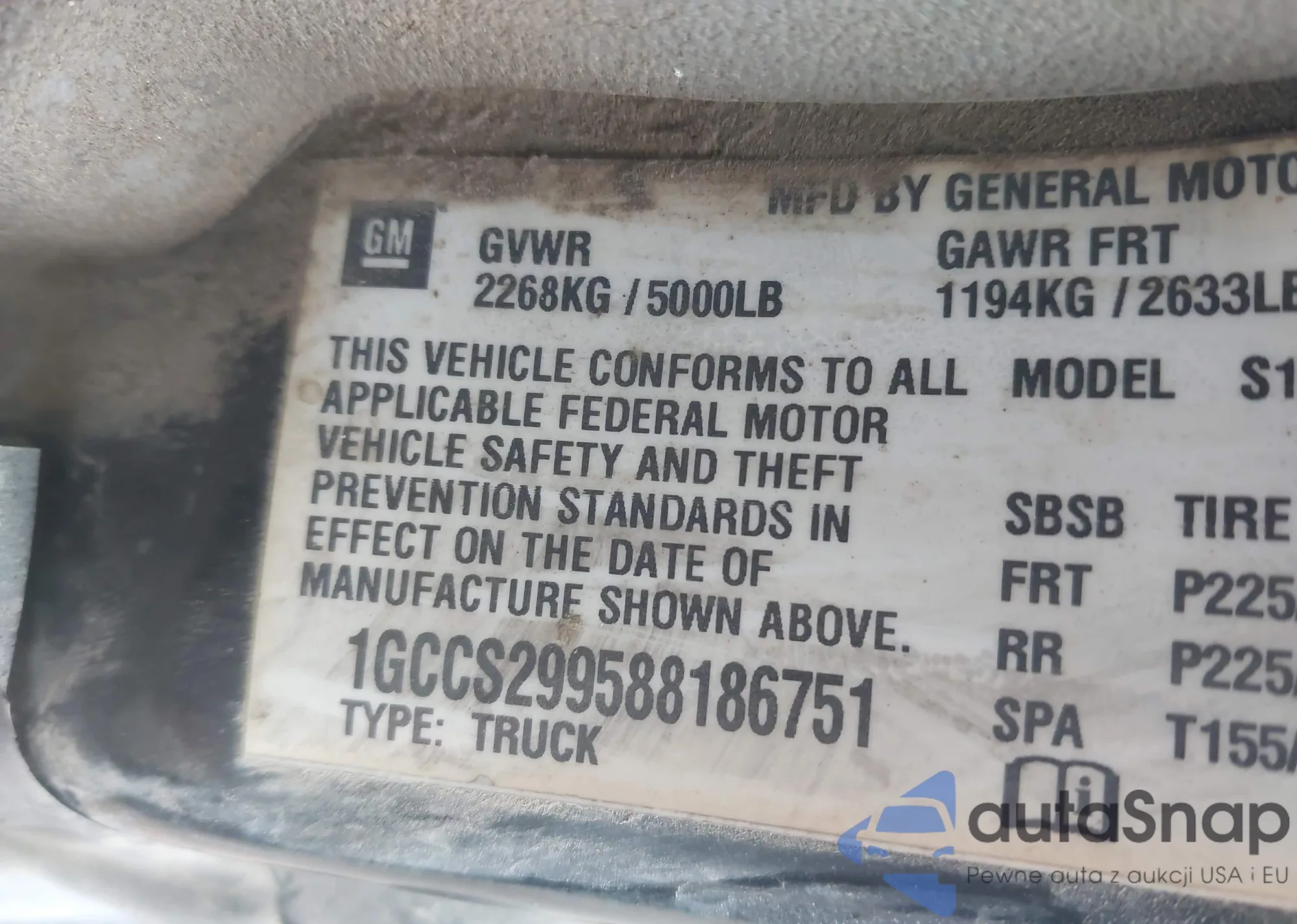 LOT: 43102071 VIN: 1GCCS299588186751
