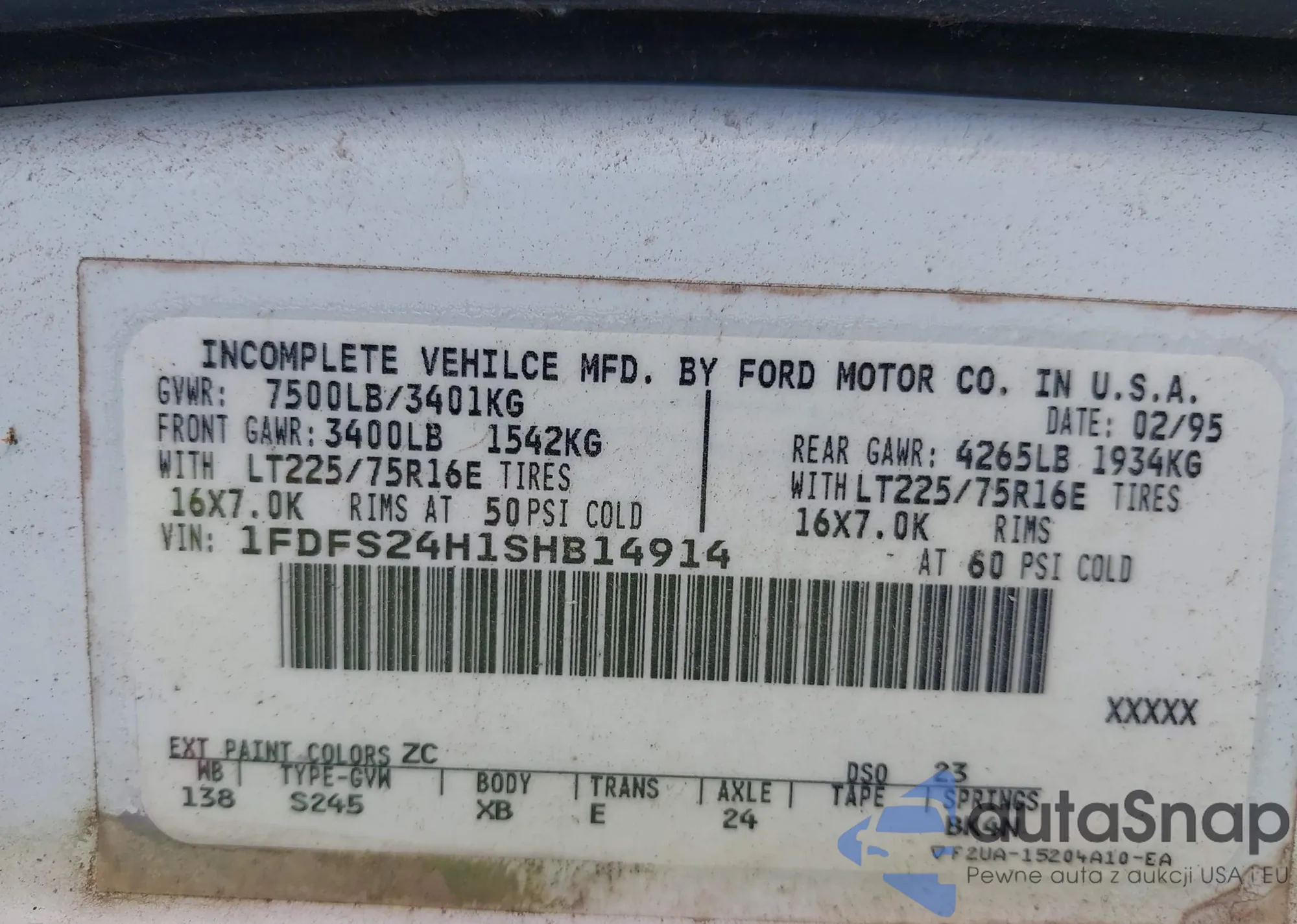 • VIN 1FDFS24H1SHB14914