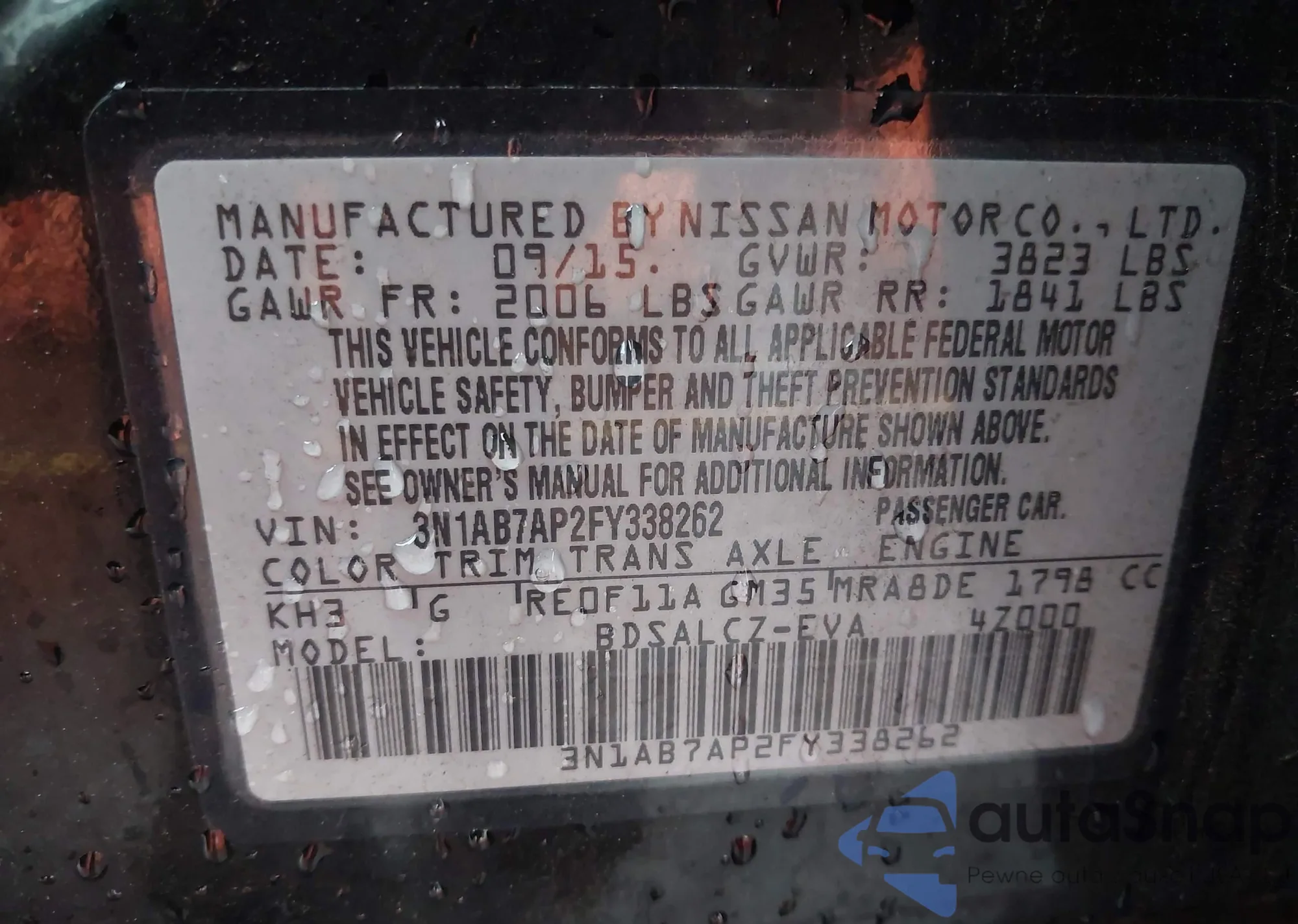 LOT: 43538675 VIN: 3N1AB7AP2FY338262