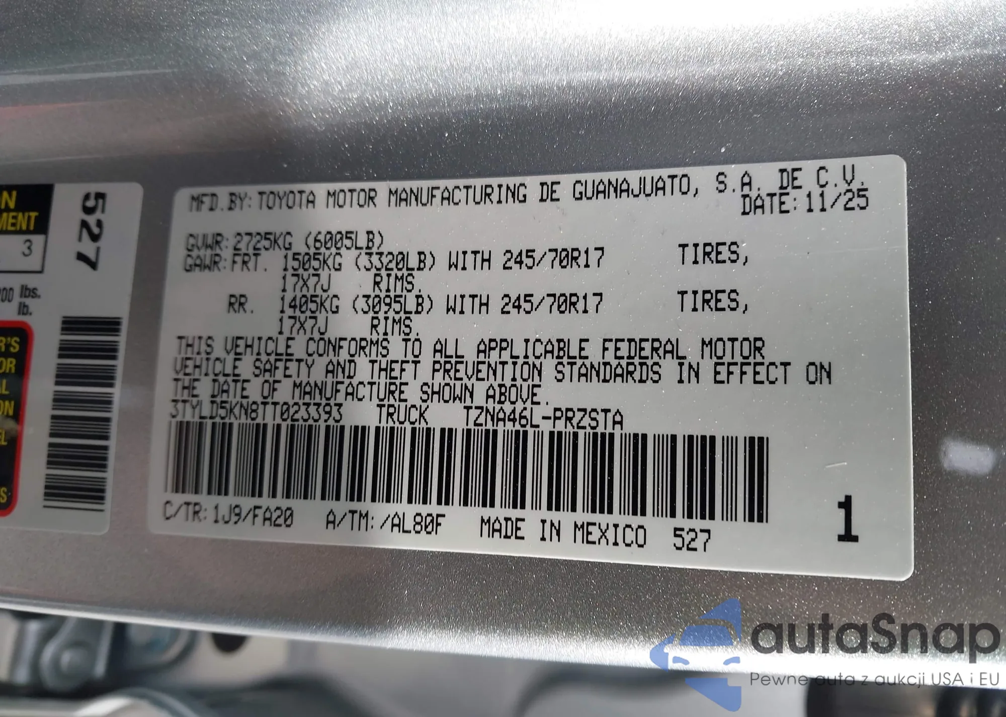 • VIN 3TYLD5KN8TT023393
