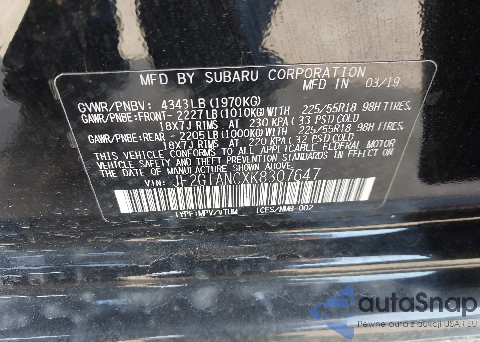 • VIN JF2GTANCXK8307647