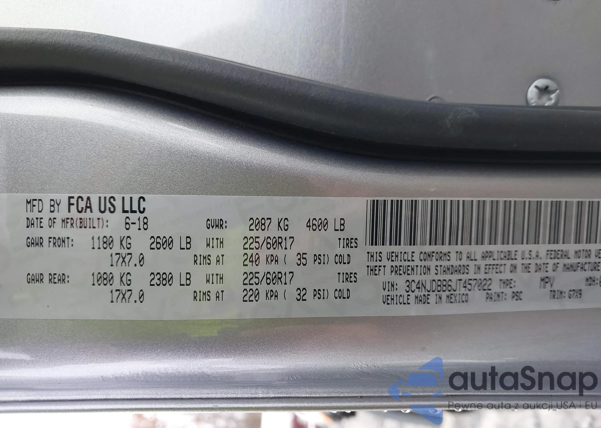 LOT: 43670022 VIN: 3C4NJDBB6JT457022