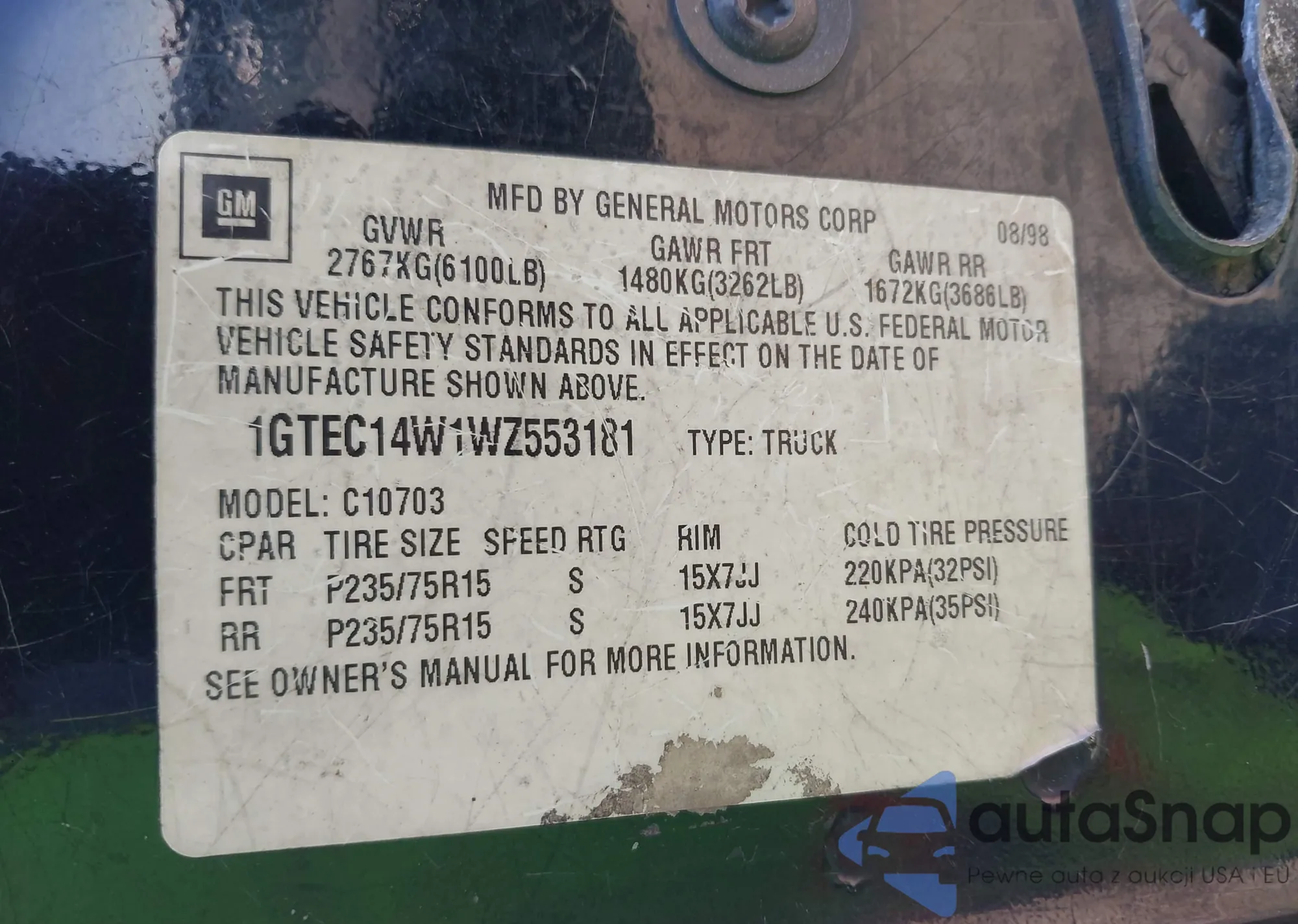 LOT: 44114961 VIN: 1GTEC14W1WZ553181