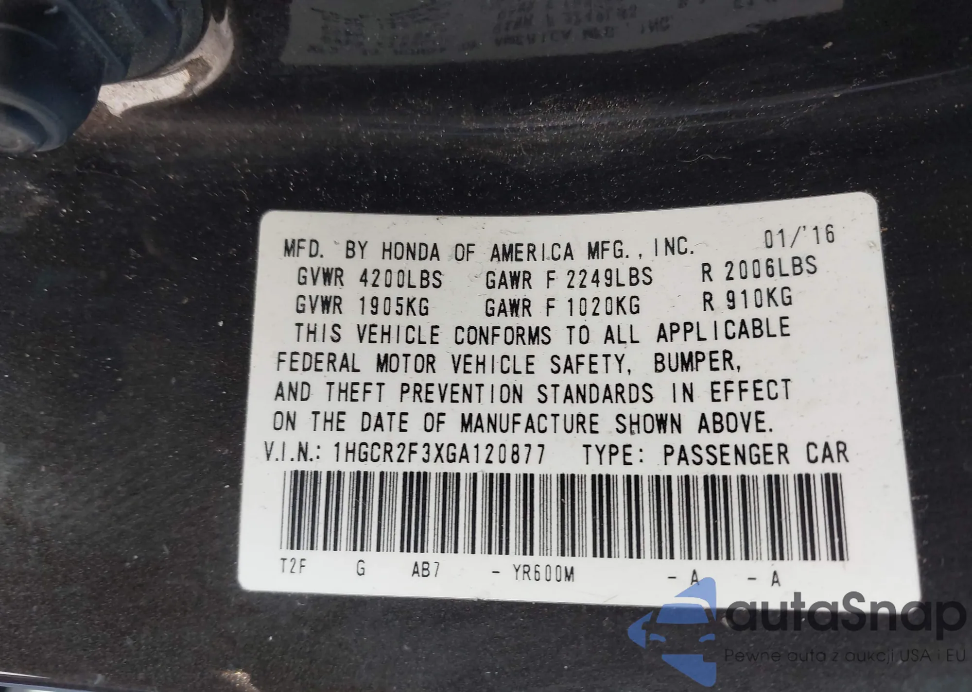 • VIN 1HGCR2F3XGA120877