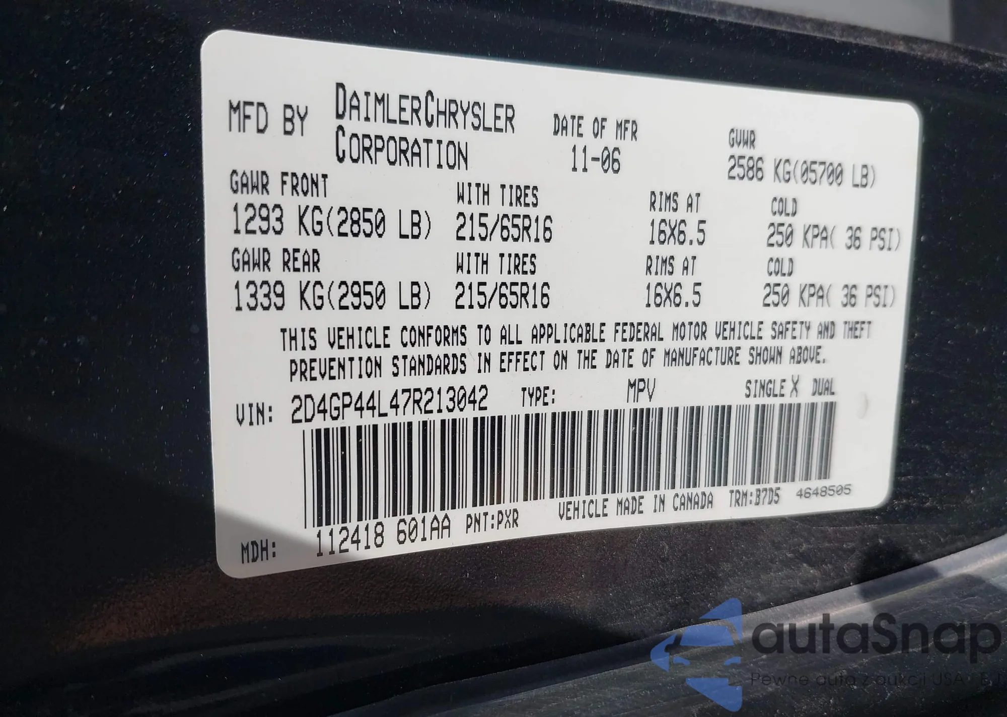 • VIN 2D4GP44L47R213042