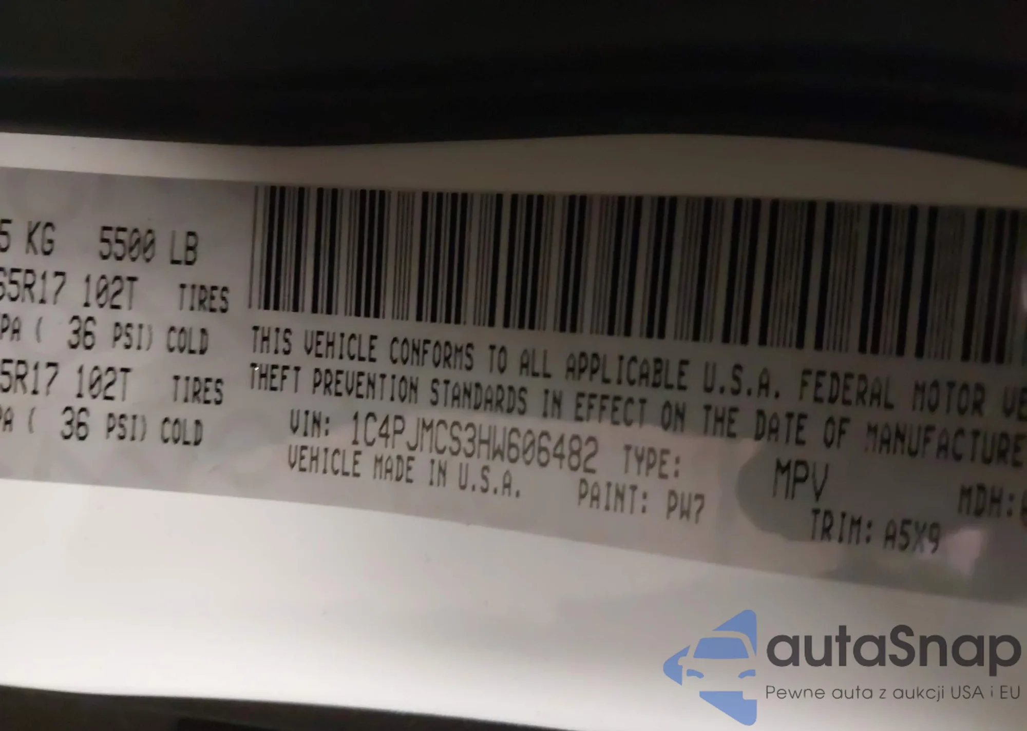 • VIN 1C4PJMCS3HW606482