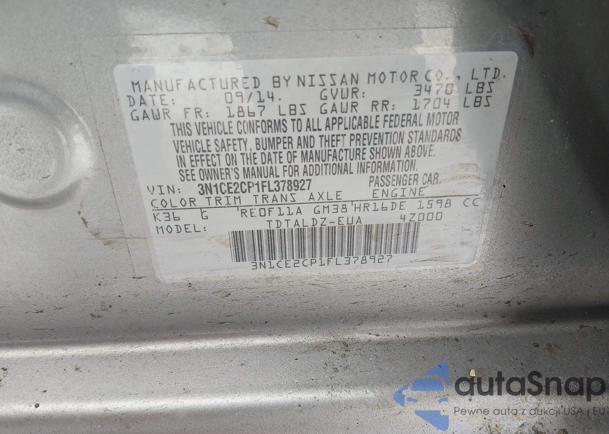 • VIN 3N1CE2CP1FL378927