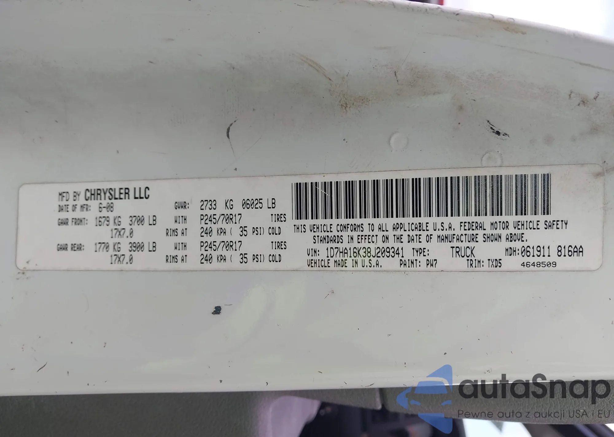 • VIN 1D7HG48N44S717961