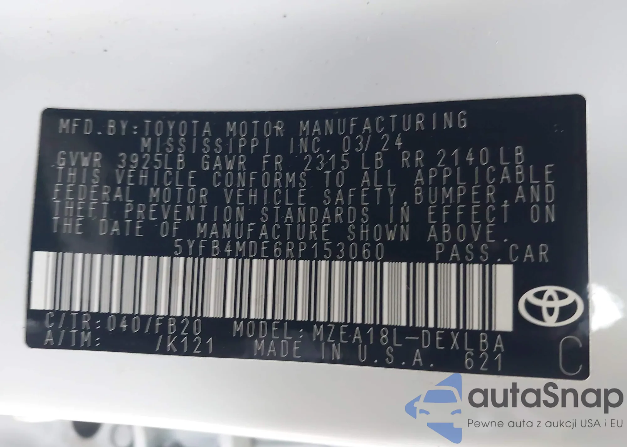 • VIN 5YFB4MDE6RP153060