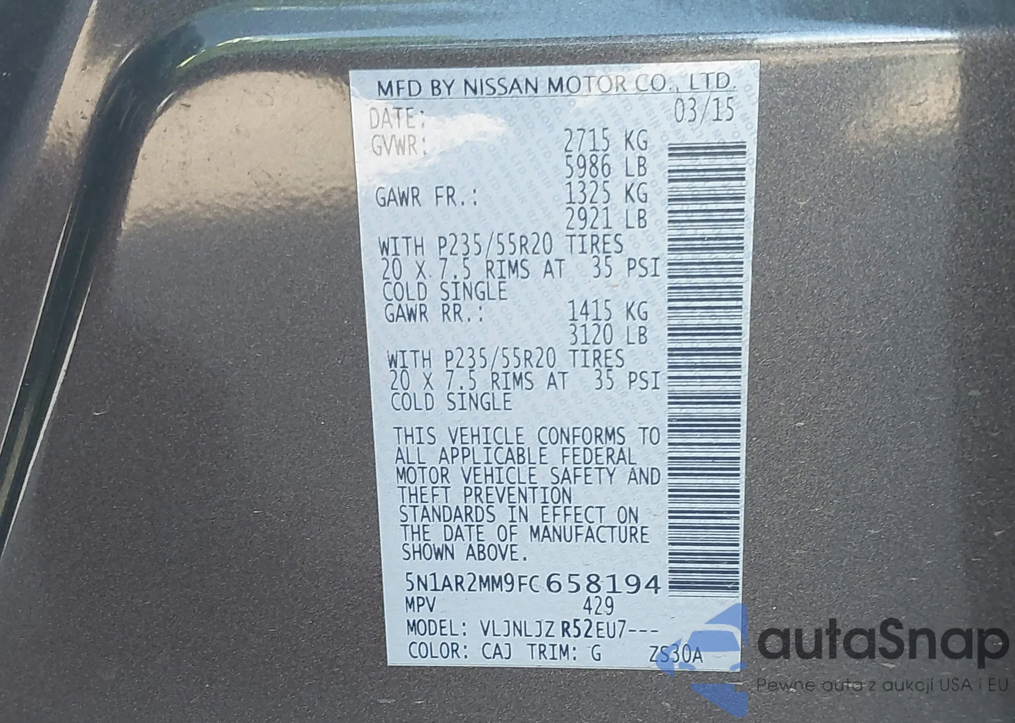 LOT: 44012350 VIN: 5N1AR2MM9FC658194