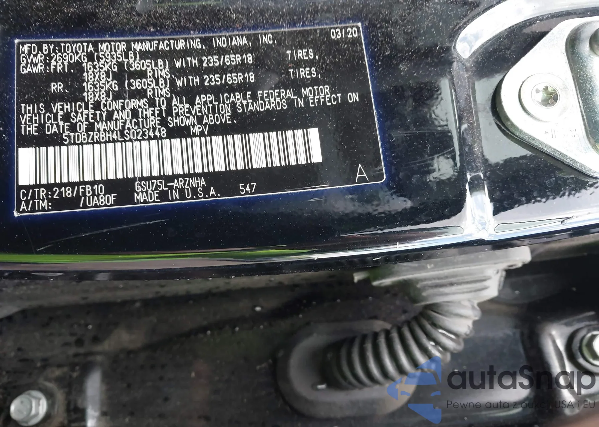 LOT: 43686201 VIN: 5TDBZRBH4LS023448