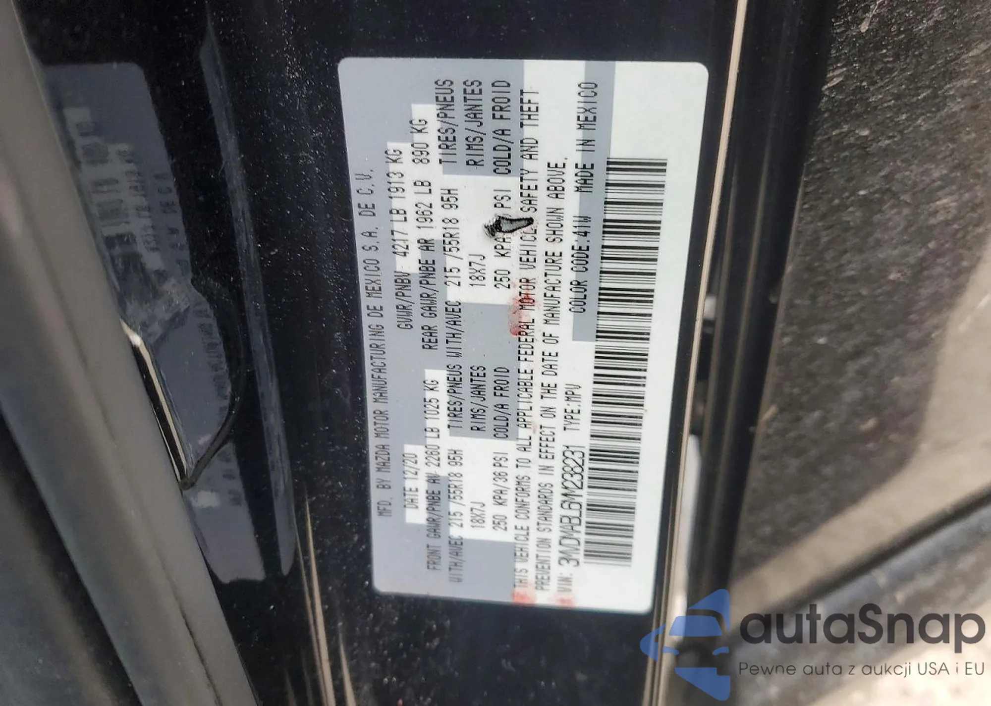 • VIN 3MVDMABL6MM238231