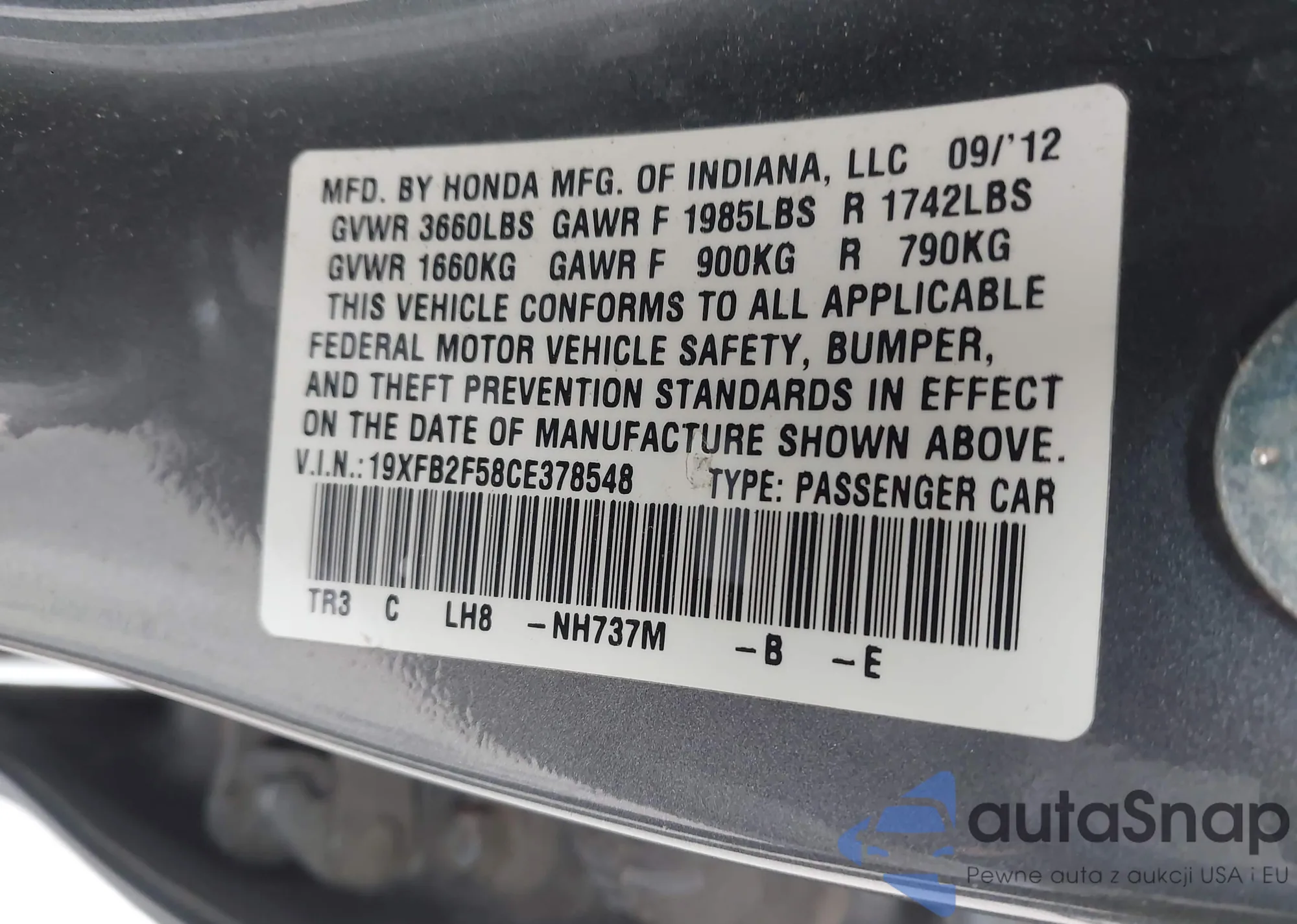 • VIN 5FNYF6H37KB064415