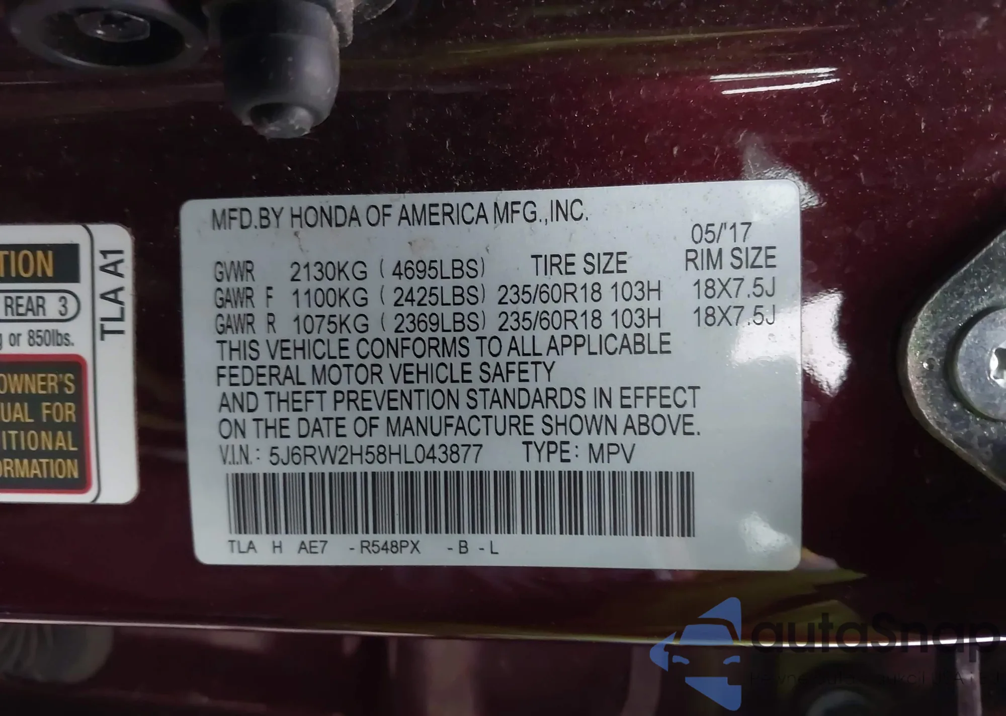 • VIN 1HGCR6F31FA005770