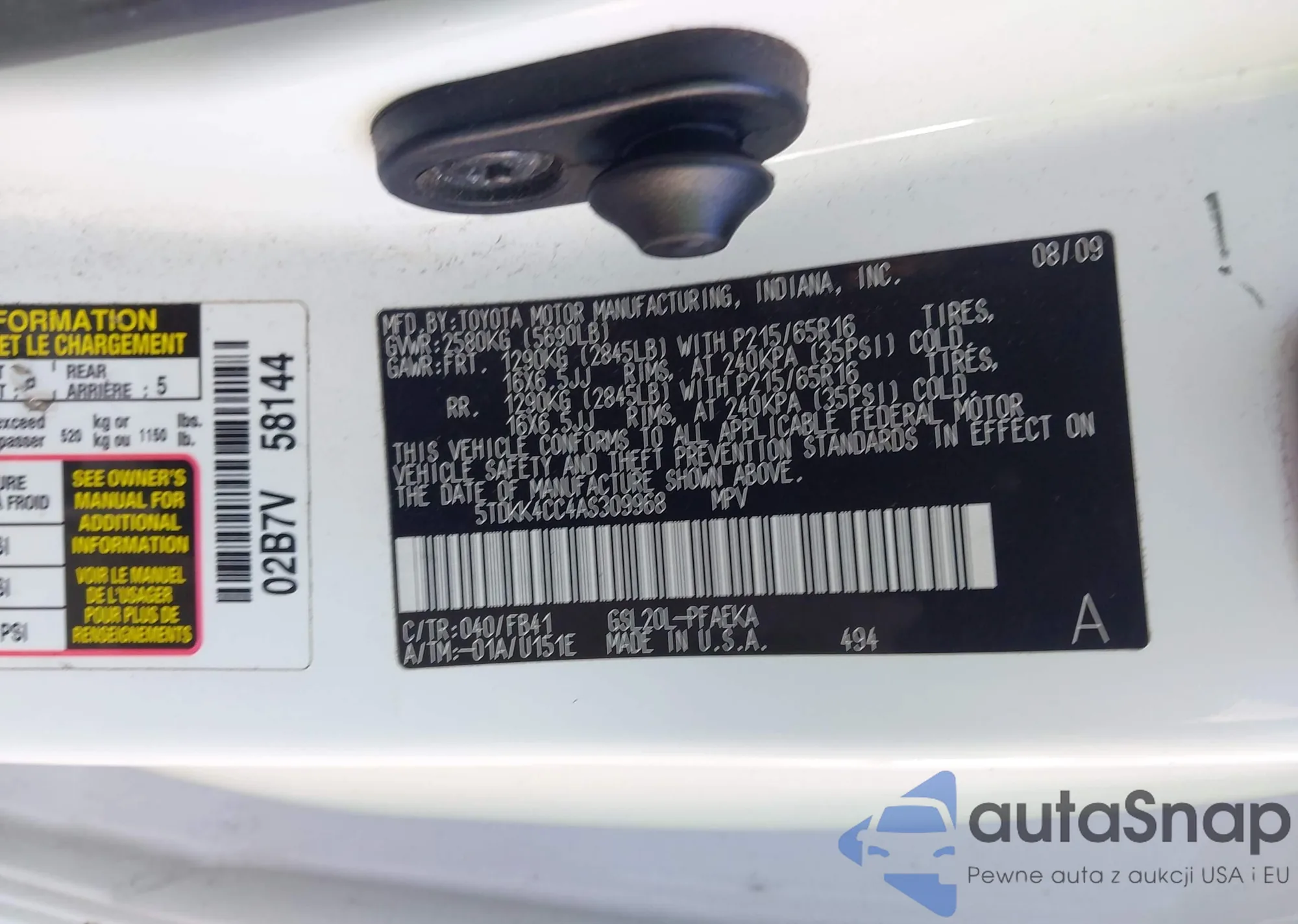 LOT: 44153054 VIN: 5TDKK4CC4AS309968