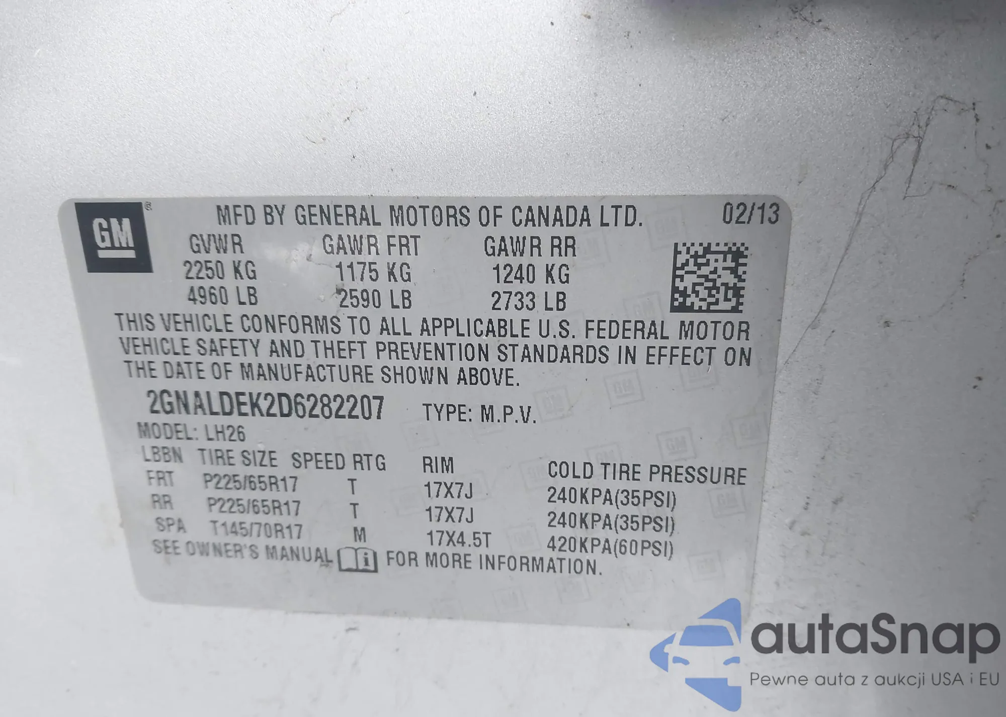 LOT: 44200328 VIN: 2GNALDEK2D6282207