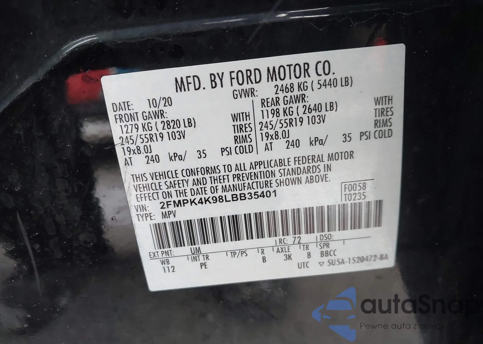 LOT: 44180694 VIN: WA1LJAF77LD012237