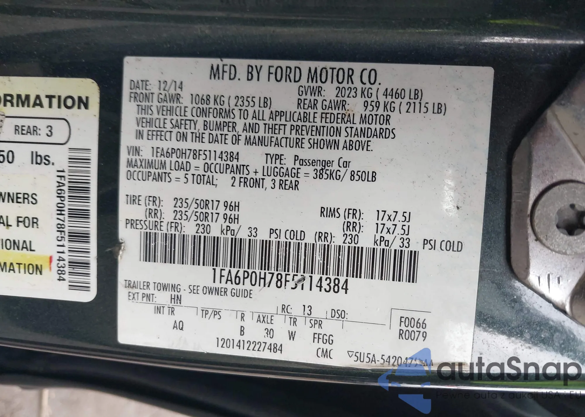 • VIN 1FA6P0H78F5114384