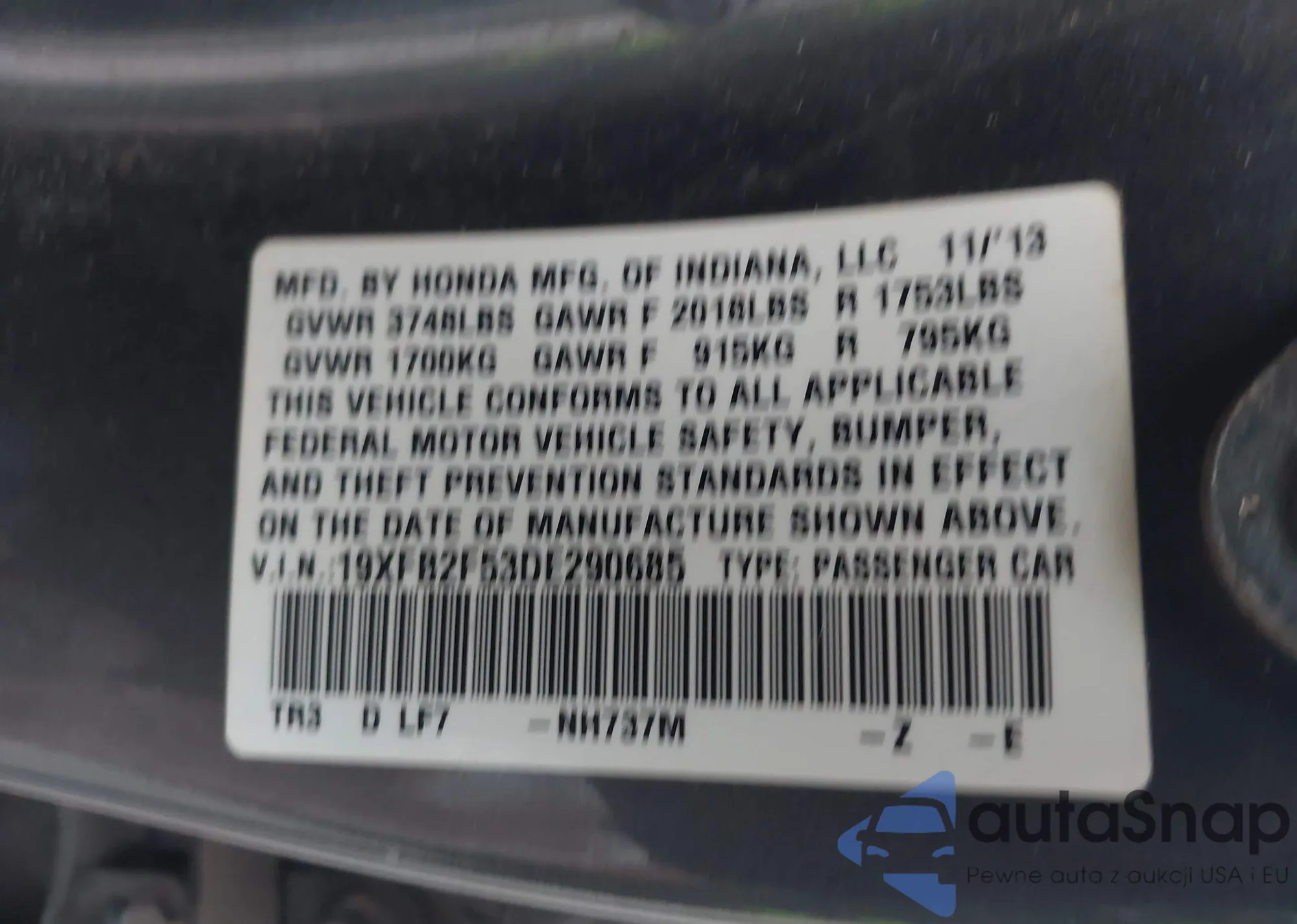 • VIN 19XFB2F53DE290685