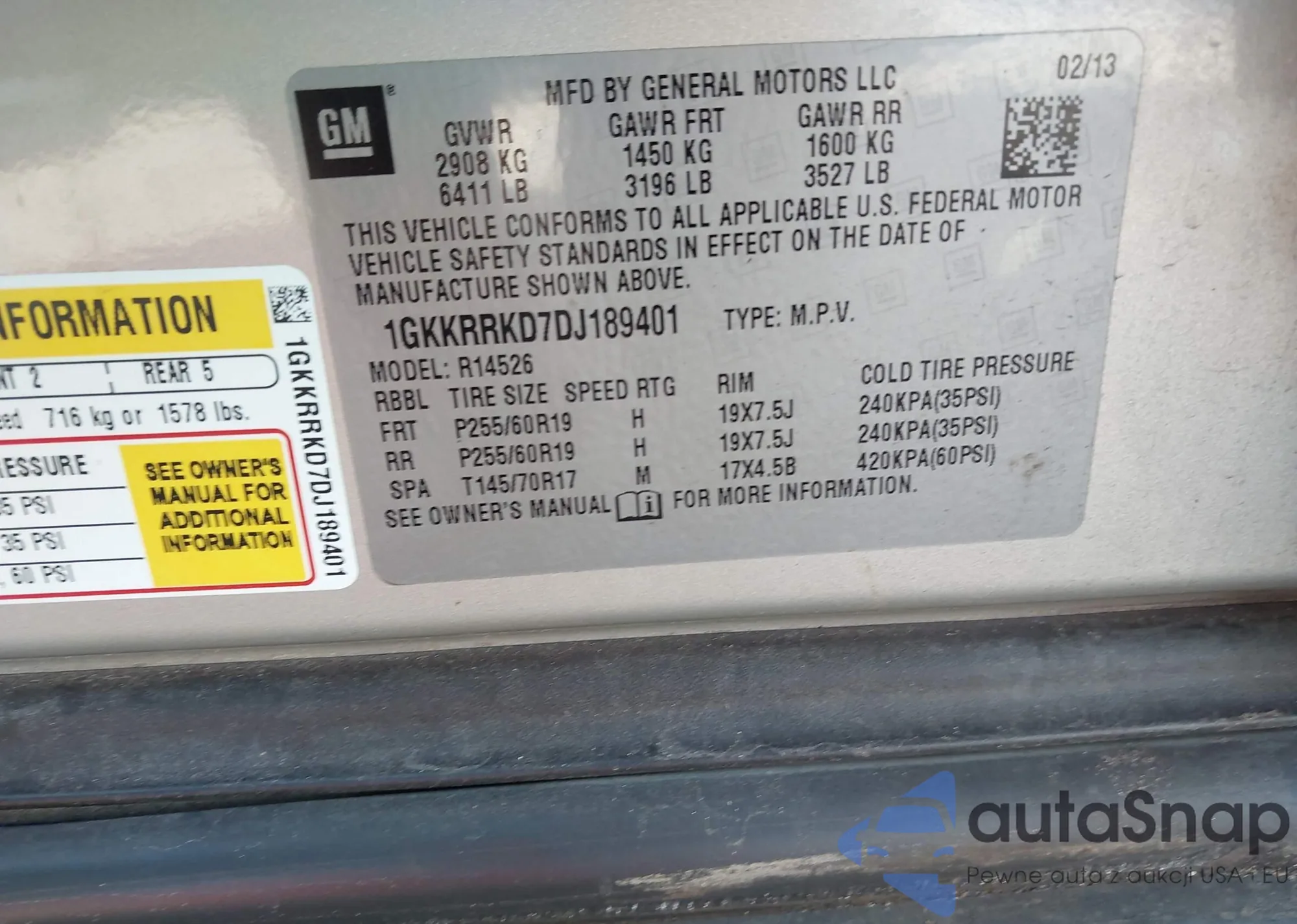 LOT: 44172521 VIN: 1GKKRRKD7DJ189401