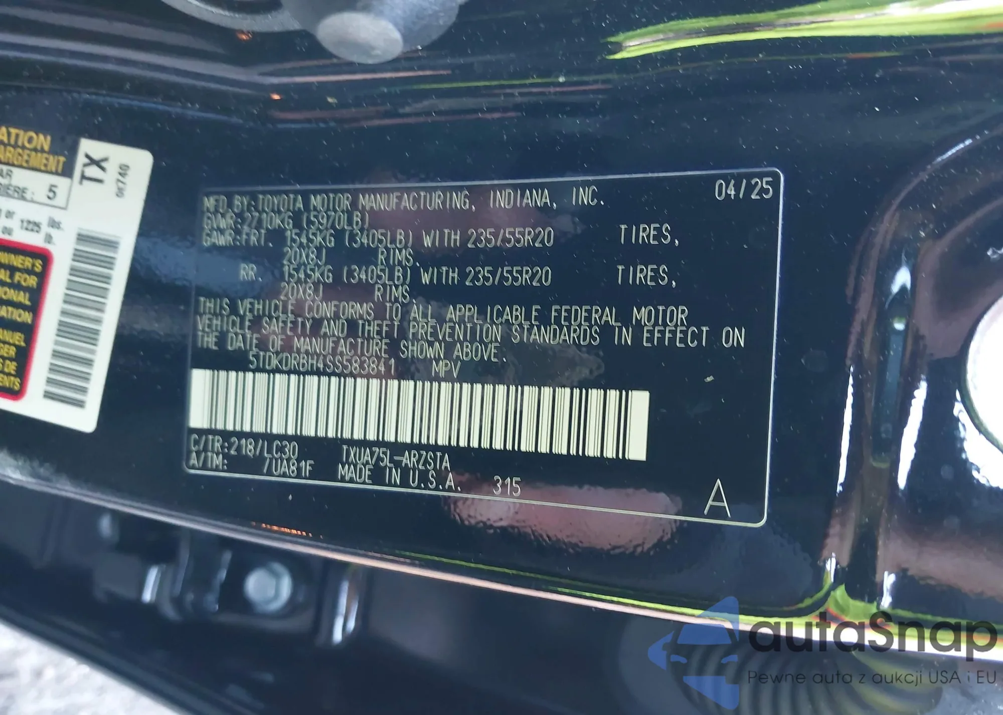 LOT: 44100523 VIN: 5TDKDRBH4SS583841
