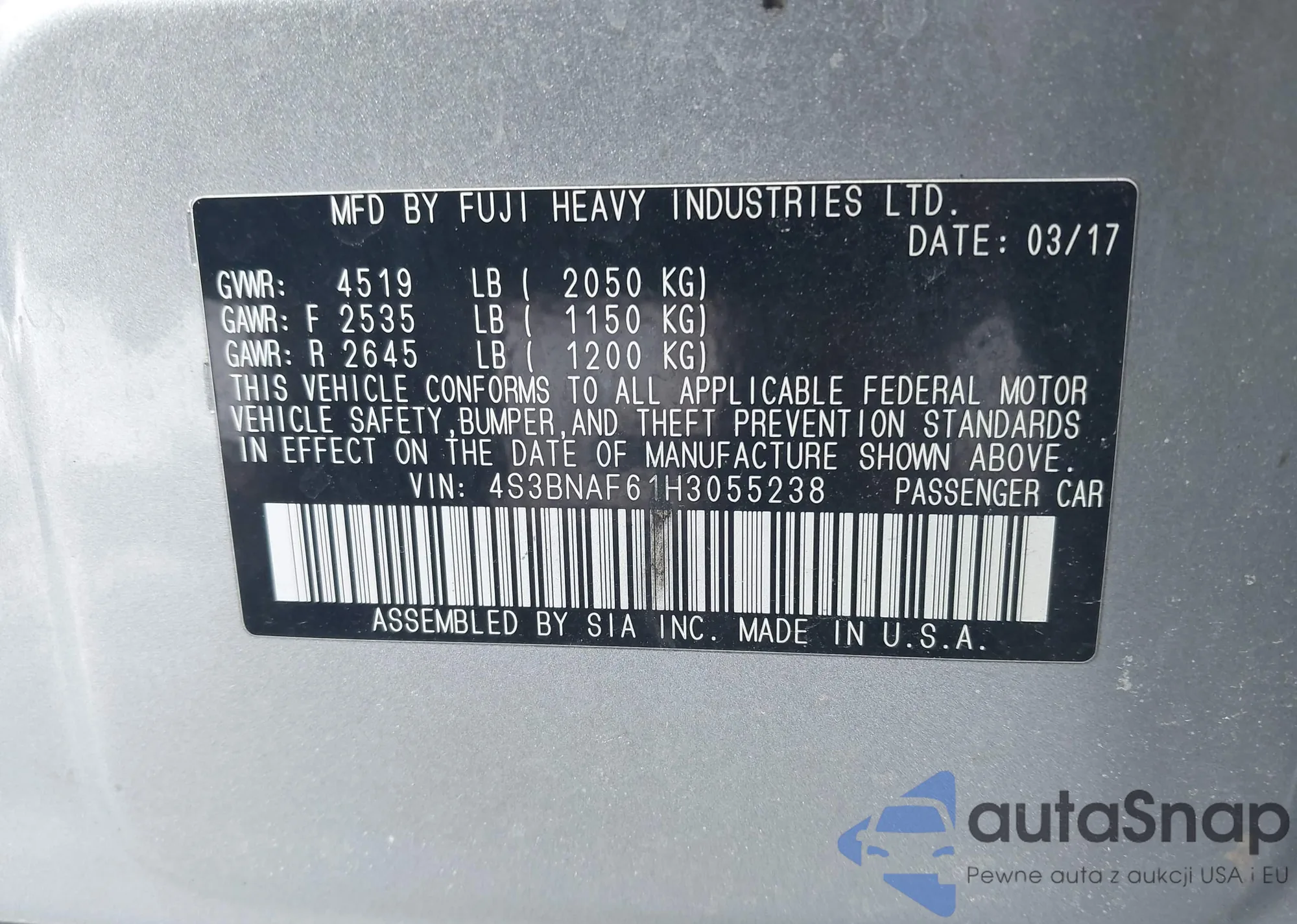 LOT: 44110707 VIN: JF2GPACC6E8283567