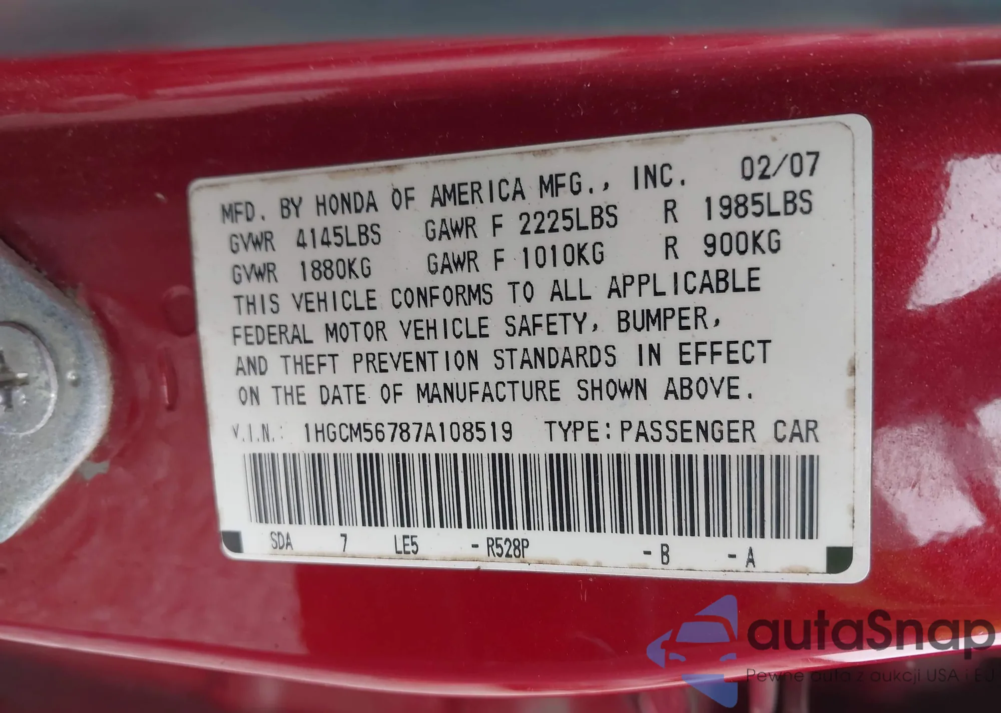LOT: 43937583 VIN: 1G1AK55F977190478