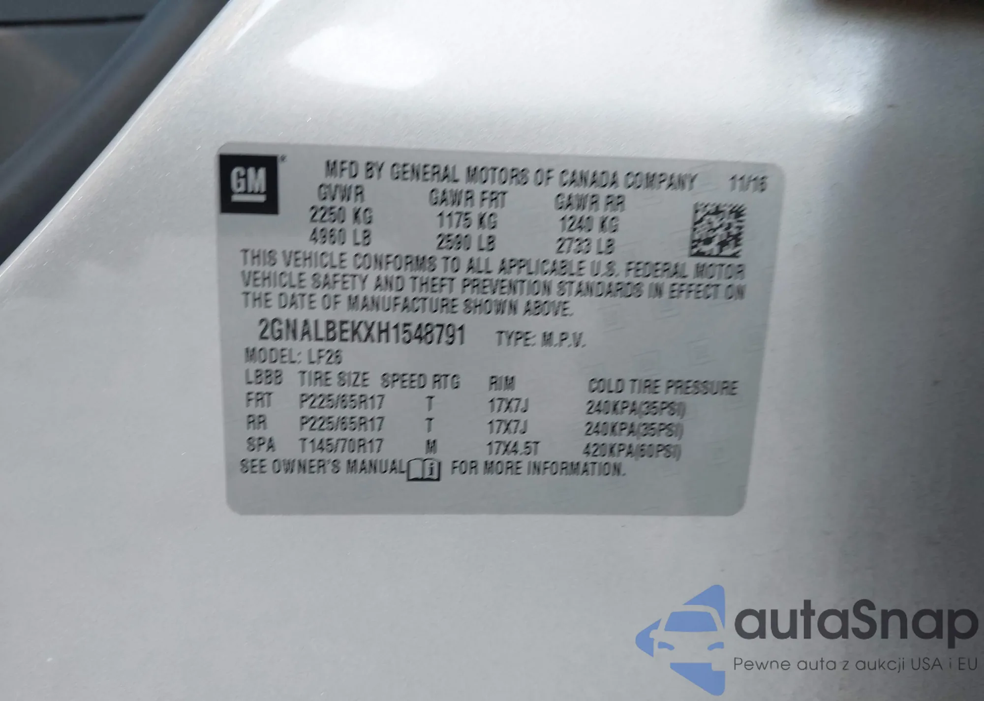 • VIN 2GNALBEKXH1548791