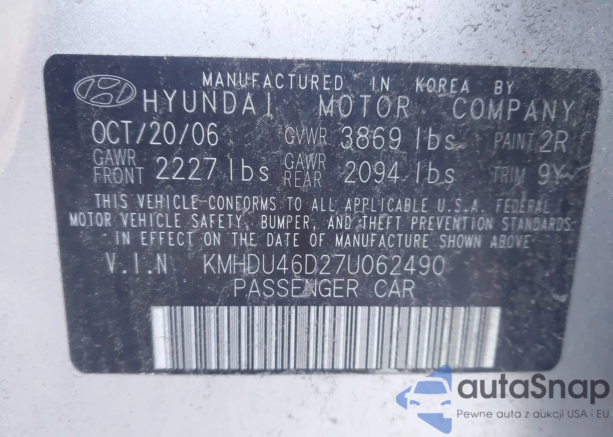 • VIN KMHDU46D27U062490