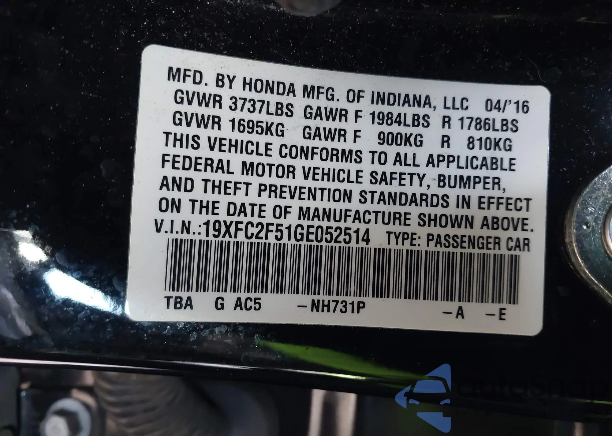 • VIN 19XFC2F51GE052514