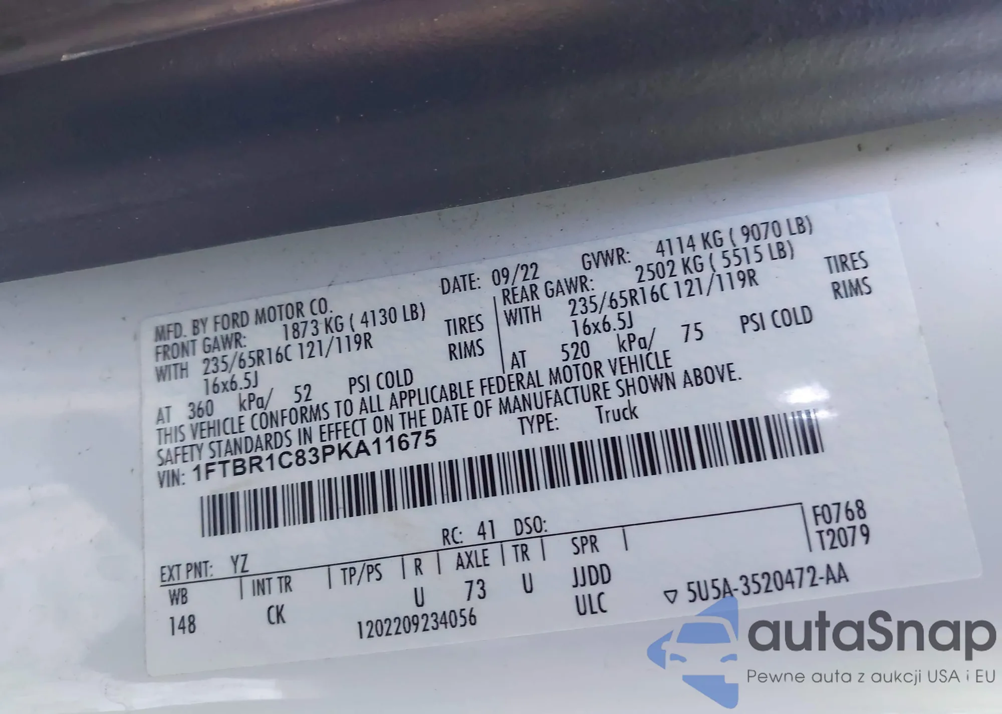 LOT: 44145417 VIN: 1FTBR1C83PKA11675