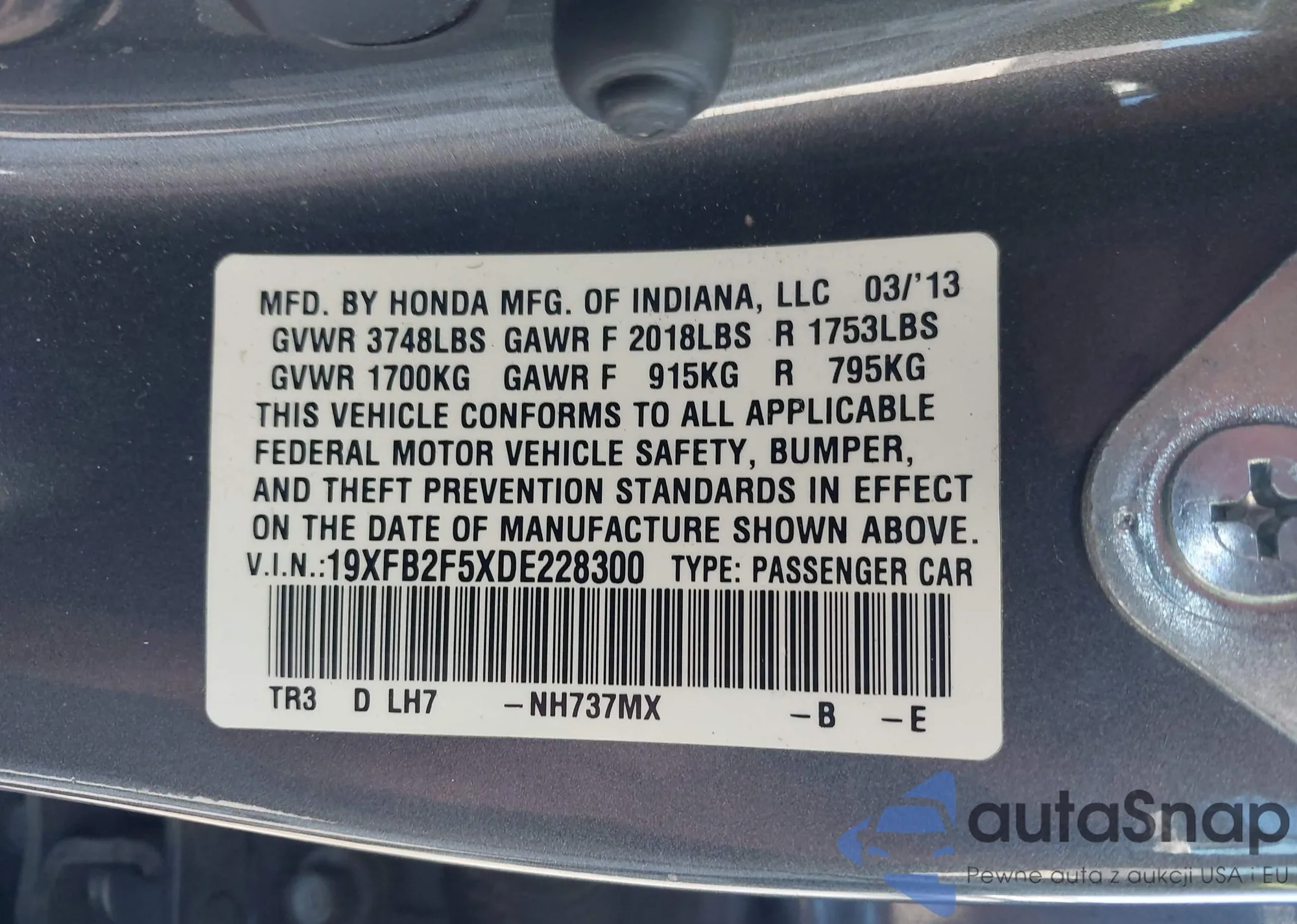 • VIN 19XFB2F5XDE228300