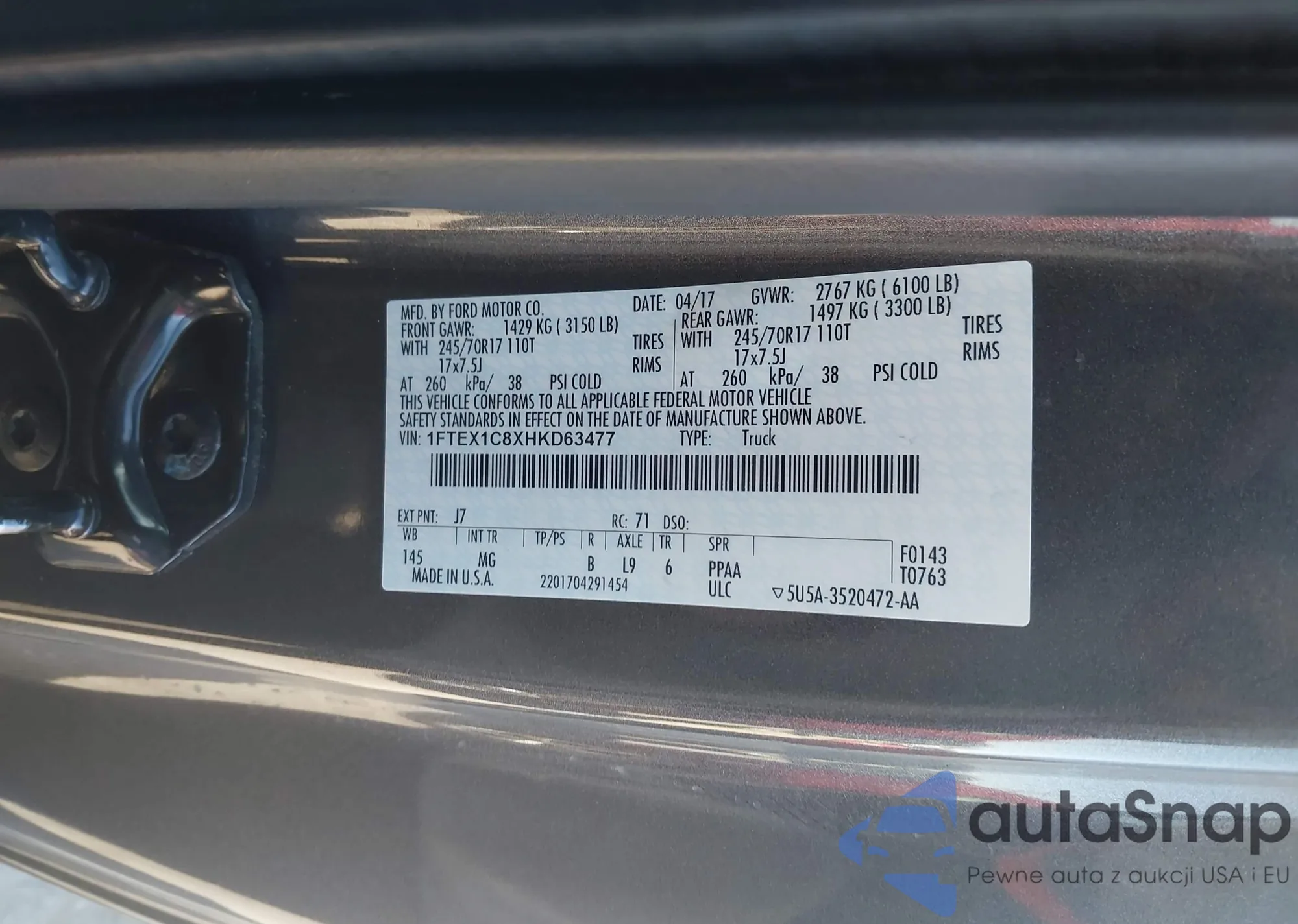 LOT: 44303904 VIN: 1FTEX1C8XHKD63477