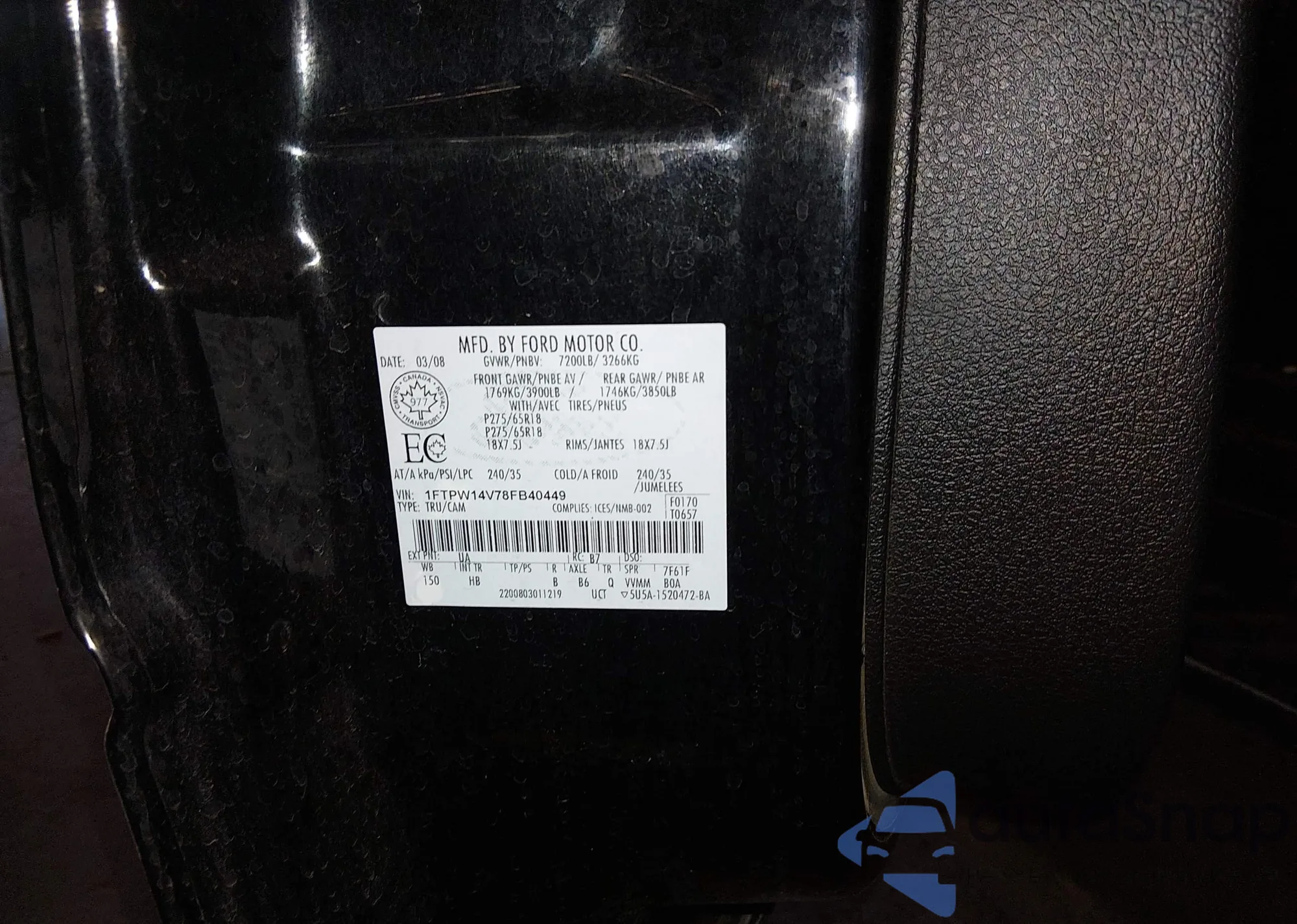 • VIN 1FTPW14V78FB40449