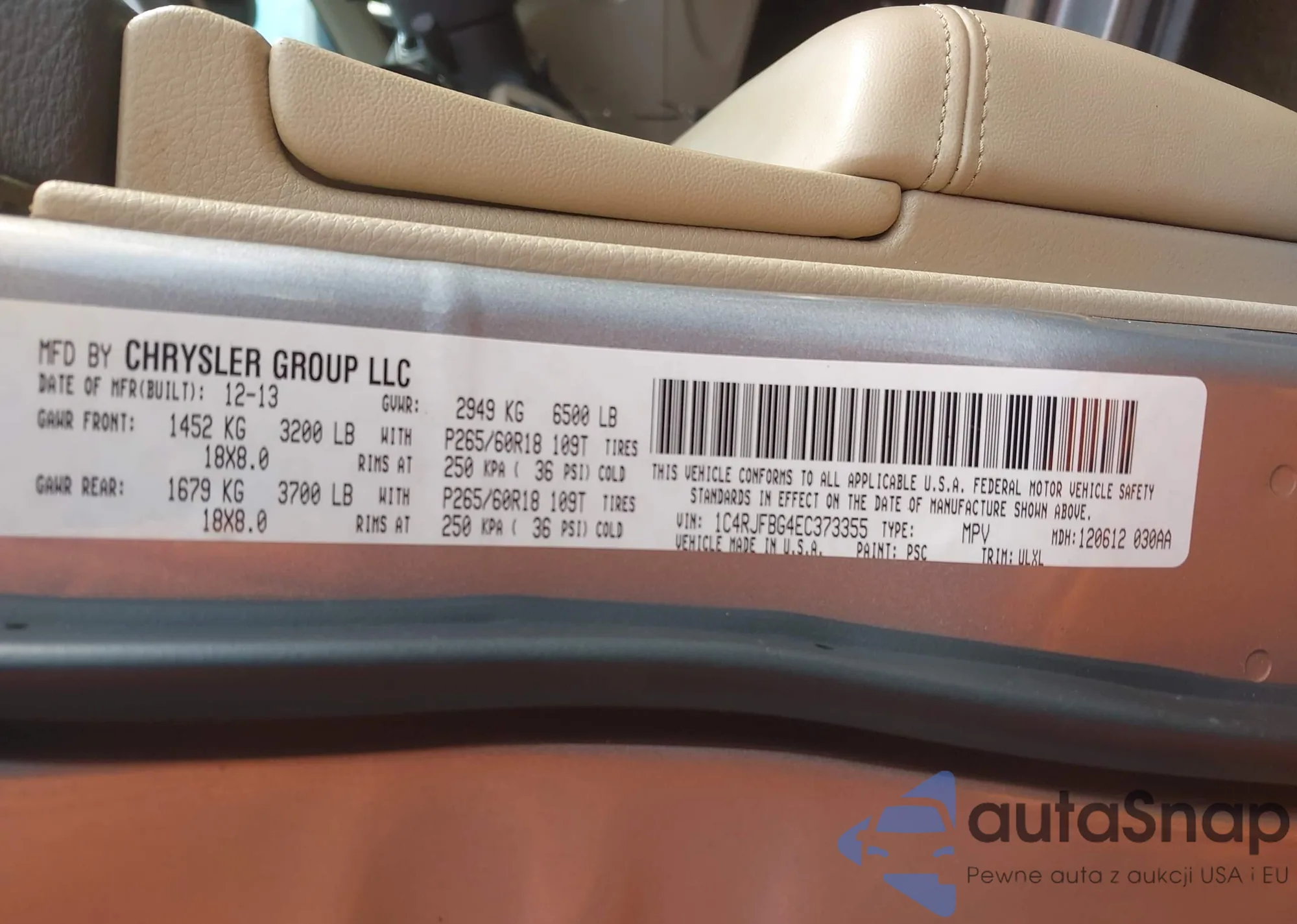 • VIN 1C4RJFBG4EC373355