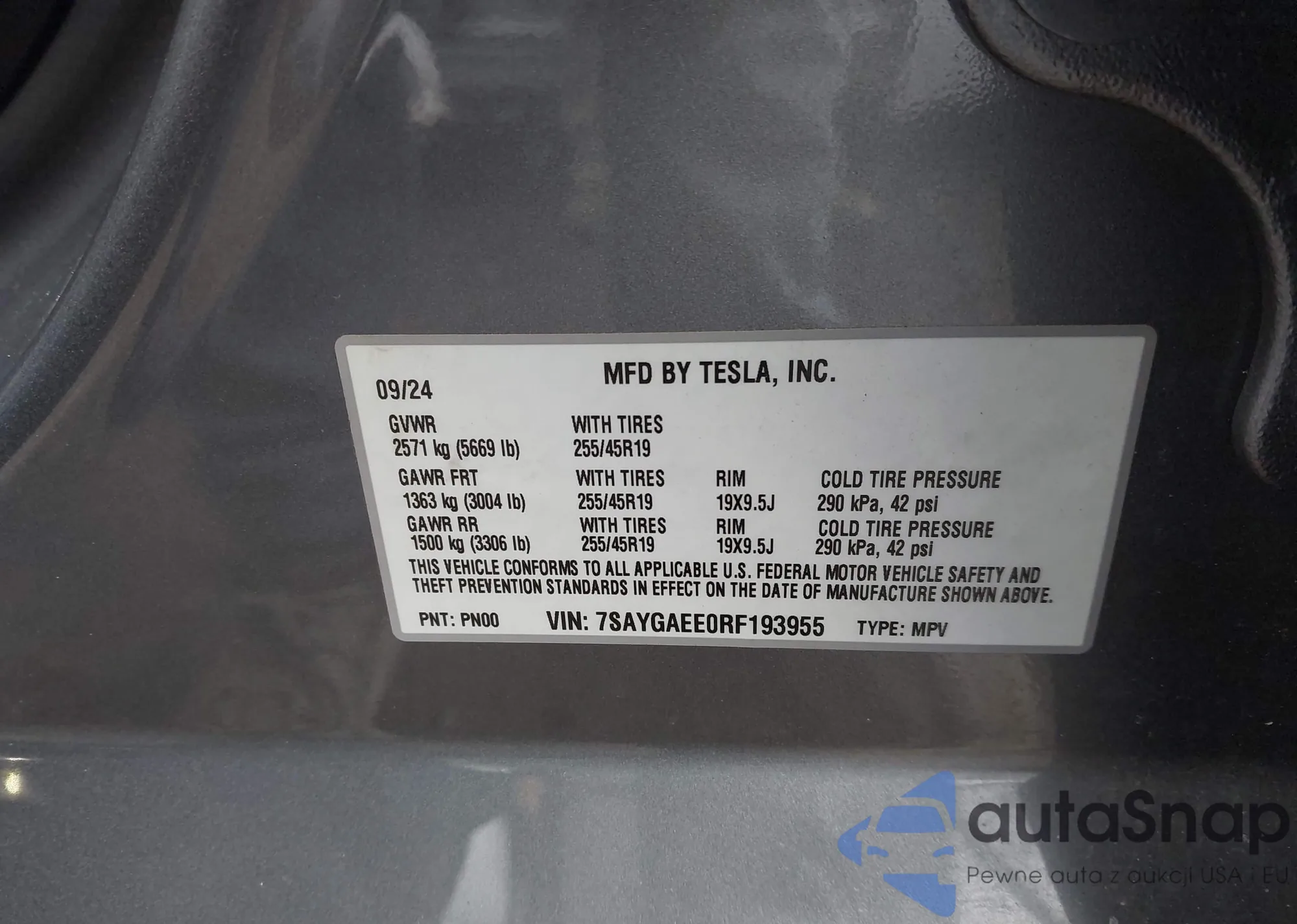 • VIN 7SAYGAEE0RF193955