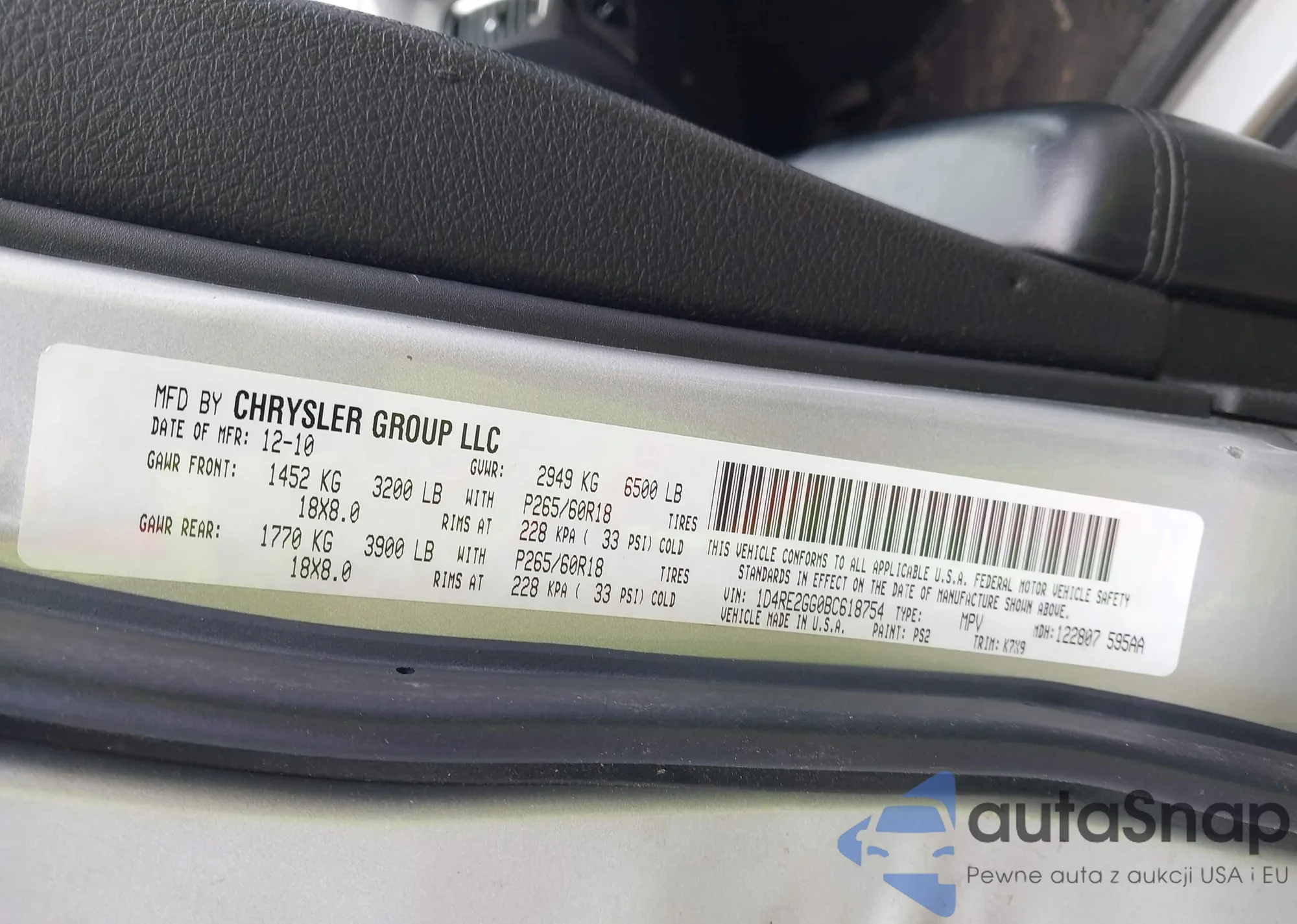 LOT: 44080757 VIN: 1D4RE2GG0BC618754